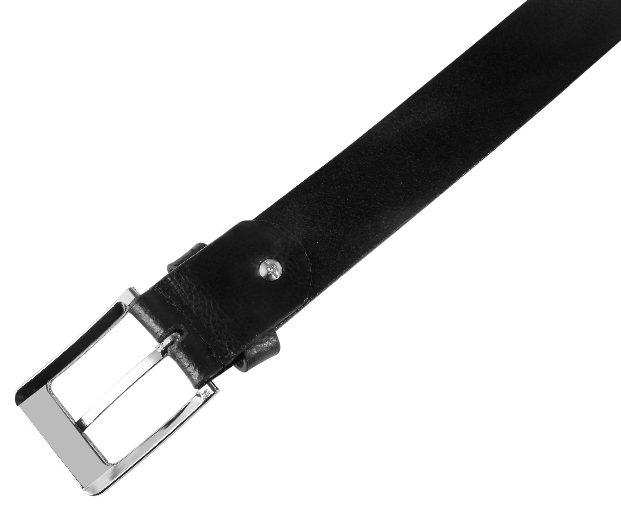 Der schwarze Gürtel der Marke Leonardo Verrelli ist aus Echtleder gefertigt und präsentiert sich im glatten Finish mit individueller Maserung. Er hat eine Bundweite von 110 cm, ist 3,5 cm breit und 0,3 cm dick. Die Löcher sind im Abstand von 2 cm angeordnet. Somit ist der Herrengürtel vielseitig einsetzbar, denn er lässt sich durch die herkömmlichen Gürtelschlaufen problemlos durchziehen. Aufgrund des hochwertigen und natürlichen Materials ist dieser Gürtel besonders robust, langlebig und reißfest und wird dadurch zu einem idealen Begleiter für alle Anlässe. Die aus Metall gefertigte Dornschließe ist mit Schrauben befestigt, wodurch der Gürtel leichthändig gekürzt werden und auf die beliebige Bundweite angepasst werden kann. Die Größe des Gürtels wird in Bundweite angegeben, welche 15 cm kürzer als die Gesamtlänge ist.