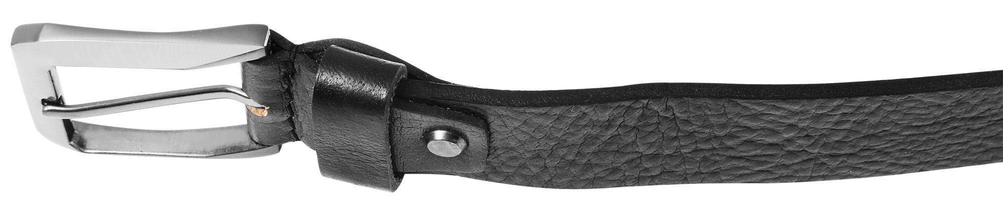 Der schwarze Gürtel der Marke Leonardo Verrelli ist aus Echtleder gefertigt und präsentiert sich im glatten Finish mit individueller Maserung. Er hat eine Bundweite von 95 cm, ist 3,4 cm breit und 0,3 cm dick. Die Löcher sind im Abstand von 2 cm angeordnet. Somit ist der moderne Damengürtel vielseitig einsetzbar, denn er lässt sich durch die herkömmlichen Gürtelschlaufen problemlos durchziehen. Aufgrund des hochwertigen und natürlichen Materials ist dieser Gürtel besonders robust, langlebig und reißfest und wird dadurch zu einem idealen Begleiter für alle Anlässe. Die aus Metall gefertigte Dornschließe ist mit einer Schraube befestigt, wodurch der Gürtel leichthändig gekürzt werden und auf die beliebige Bundweite angepasst werden kann. Die Größe des Gürtels wird in Bundweite angegeben, welche 15 cm kürzer als die Gesamtlänge ist.
