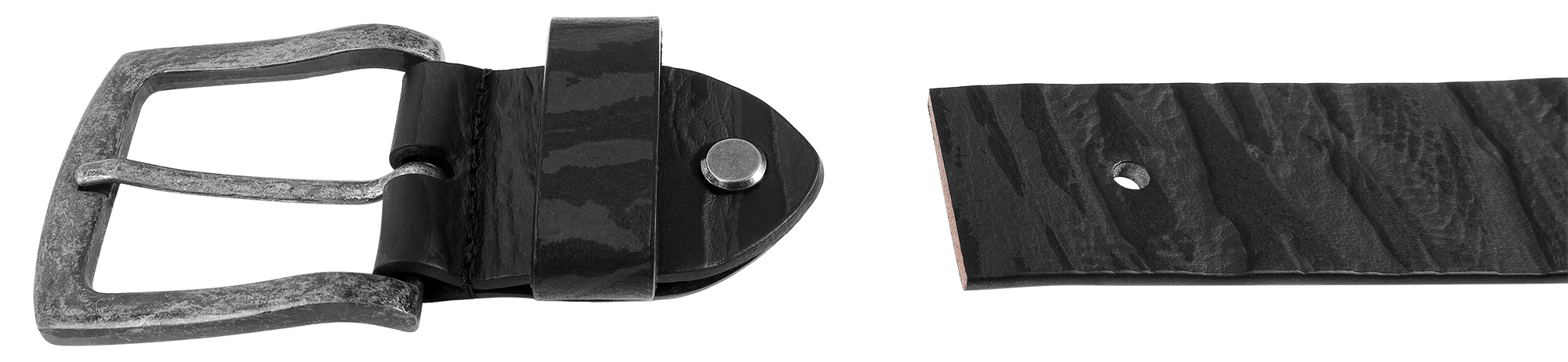 Gefertigt aus Echtleder (Büffelleder), zeigt die Oberfläche des Gürtels eine leichte, natürliche Vernarbung was seine hochwertige Qualität unterstreicht.