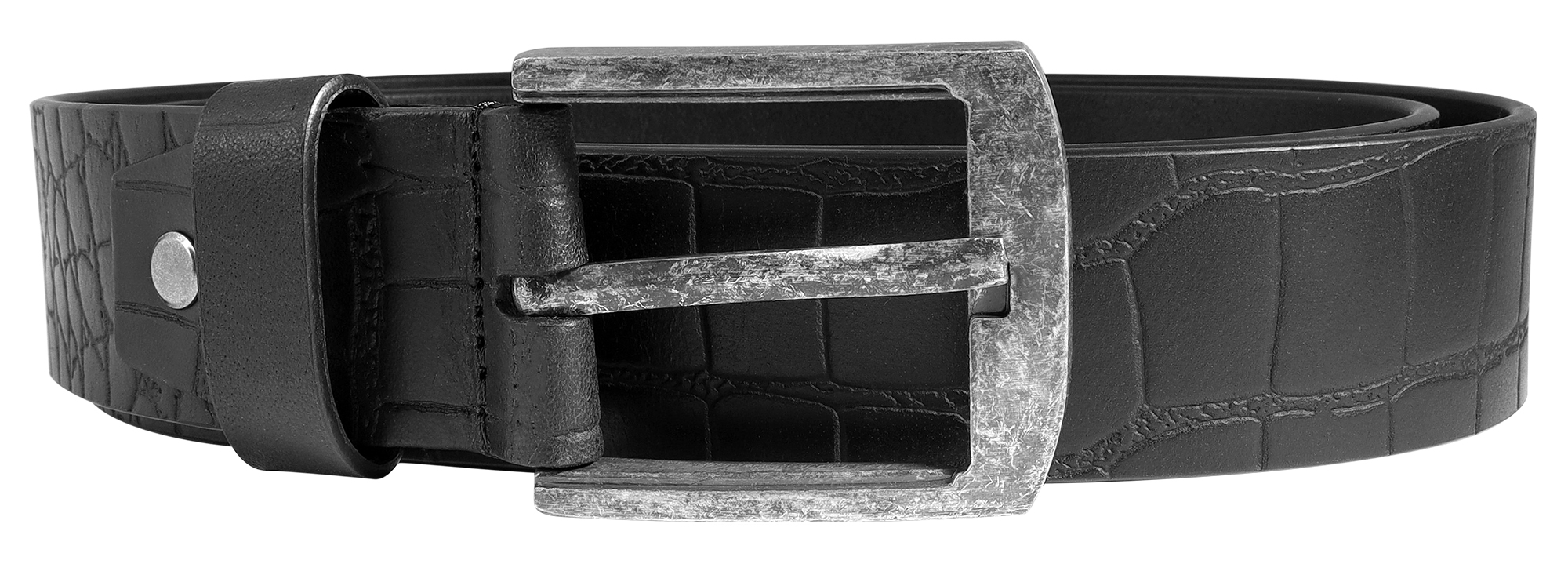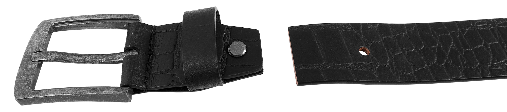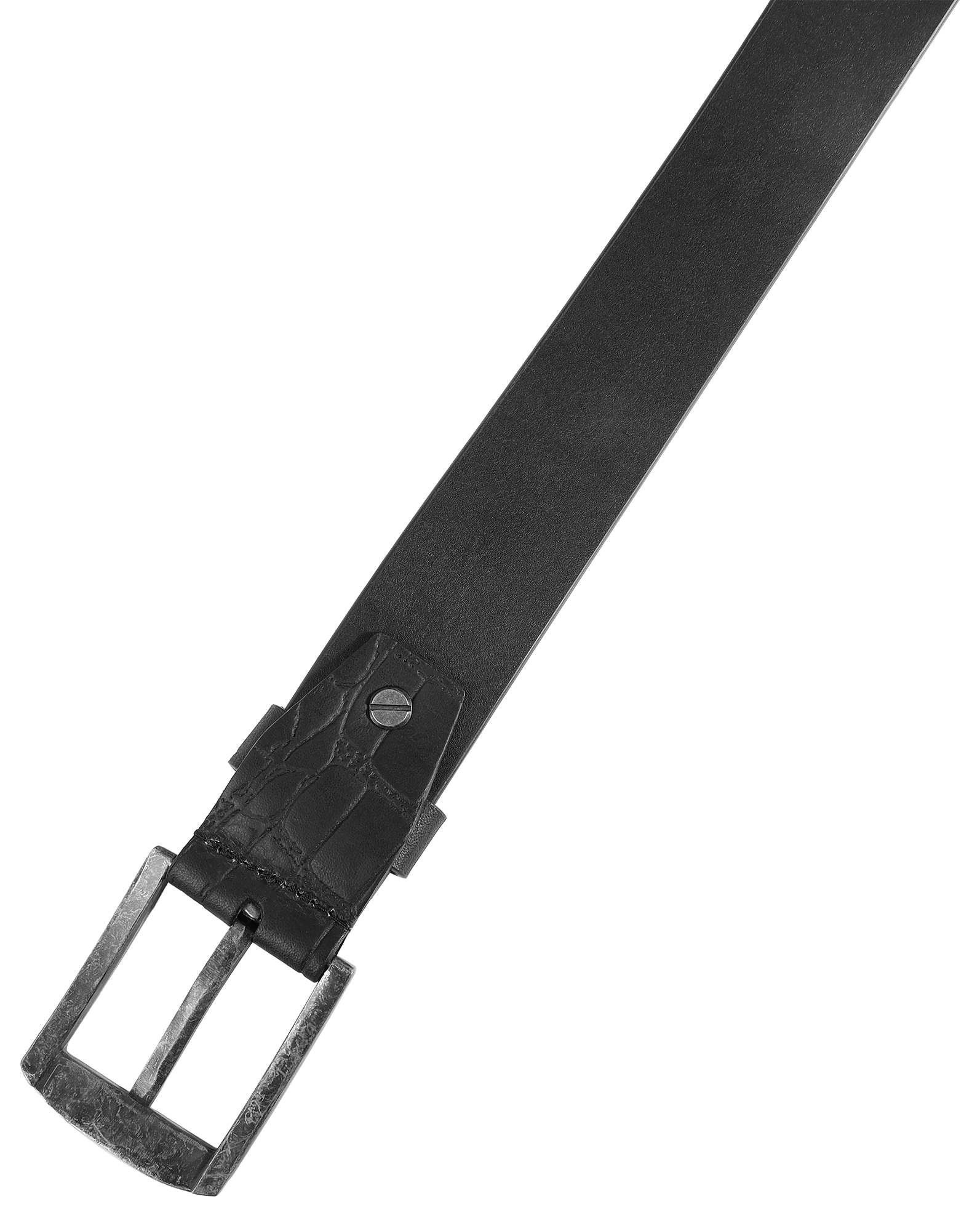 Die Dornschließe in matt Silber zusätzlich geschwärzten verleiht dem schwarzen Gürtel einen markanten und männlichen Look.