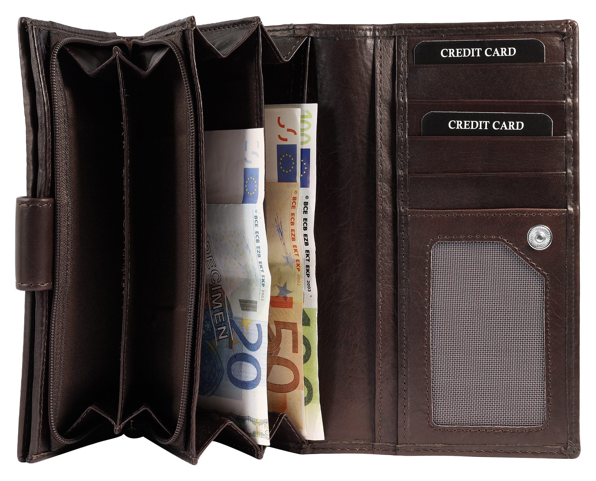 Produktinformationen "Leonardo Verrelli, Echtleder (Savage) Damen Geldbörse, länglich & RFID, dunkelbraun"