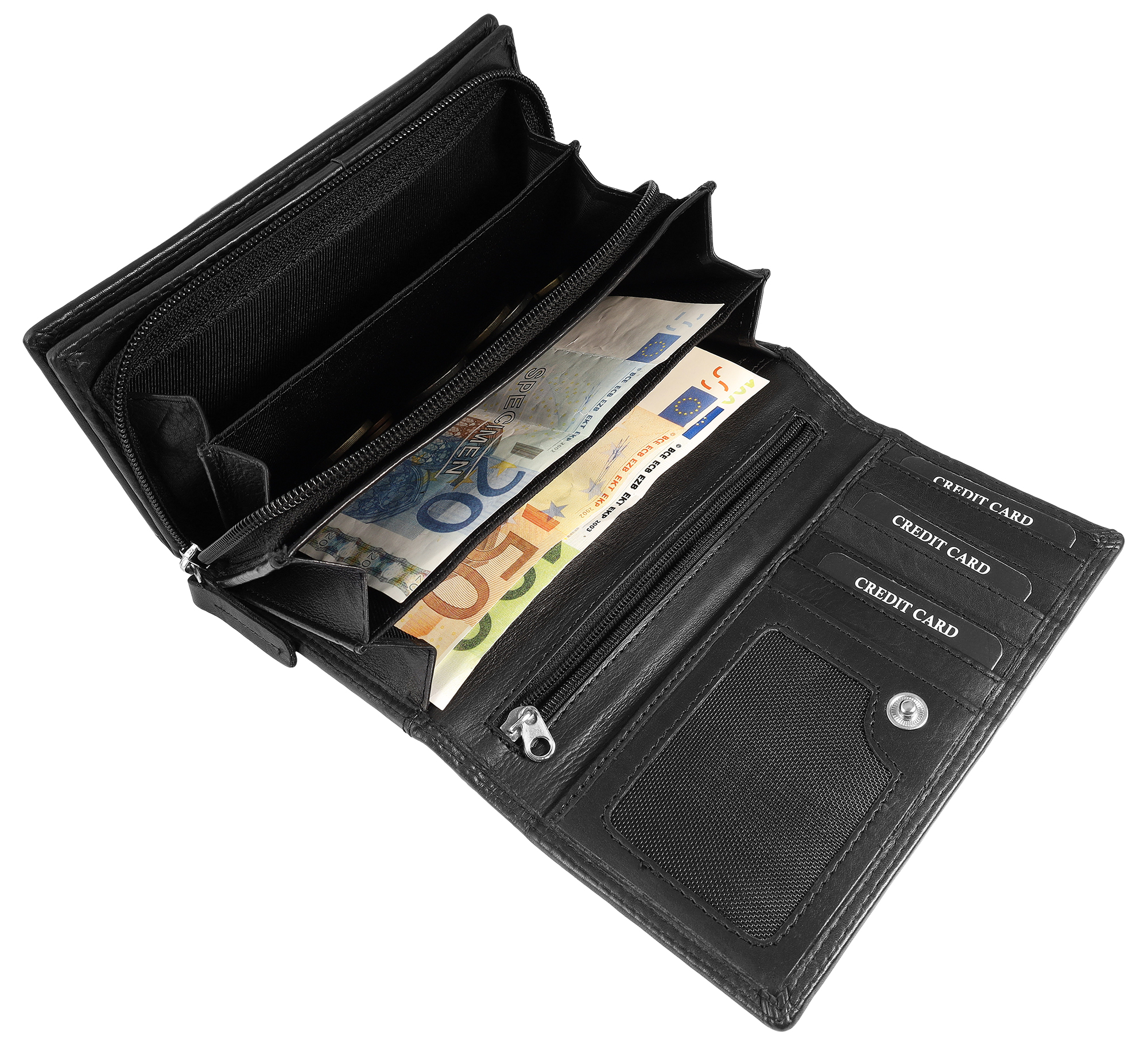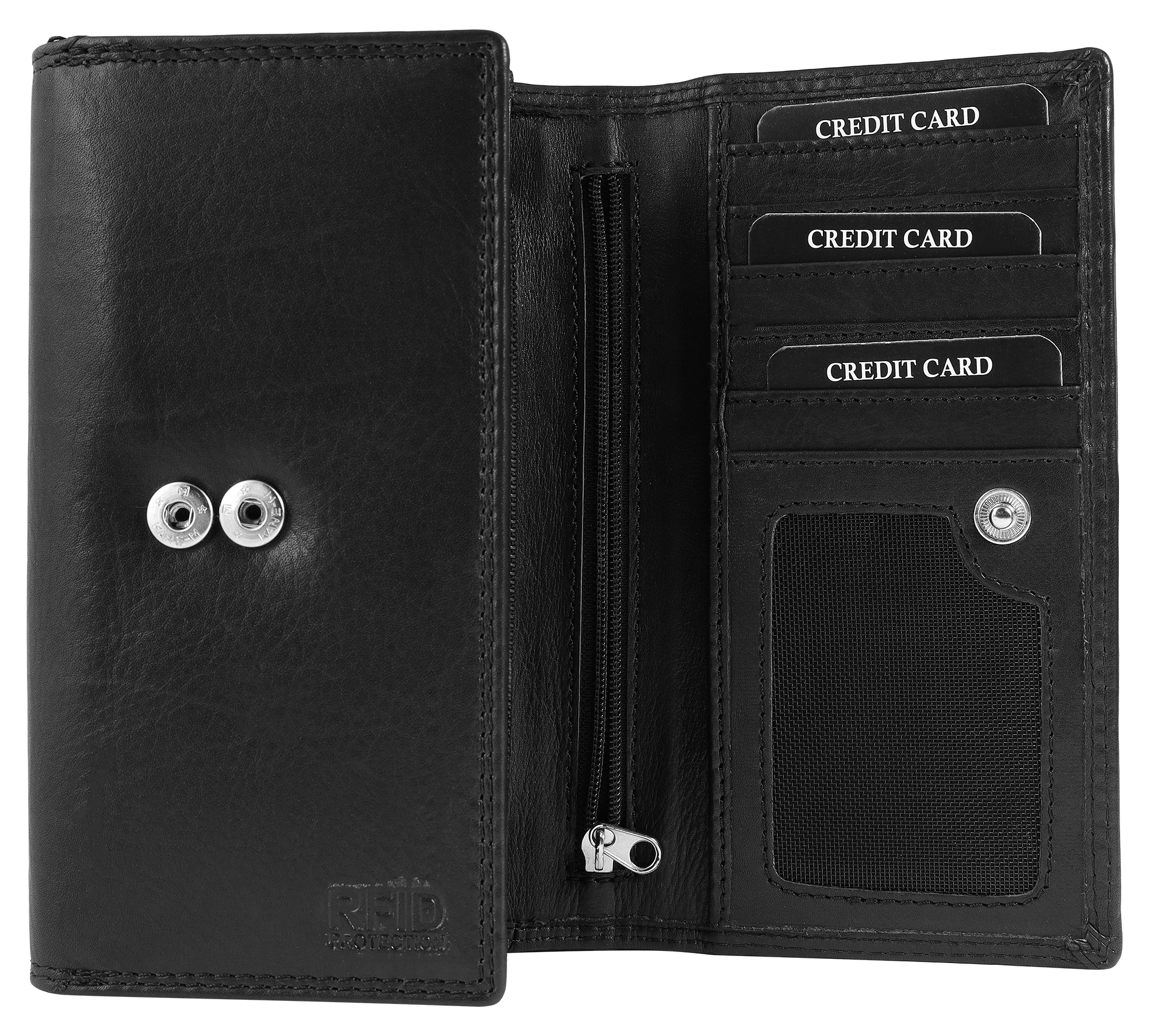 Produktinformationen "Leonardo Verrelli, Echtleder (Savage) Damen Geldbörse, länglich & RFID, schwarz"