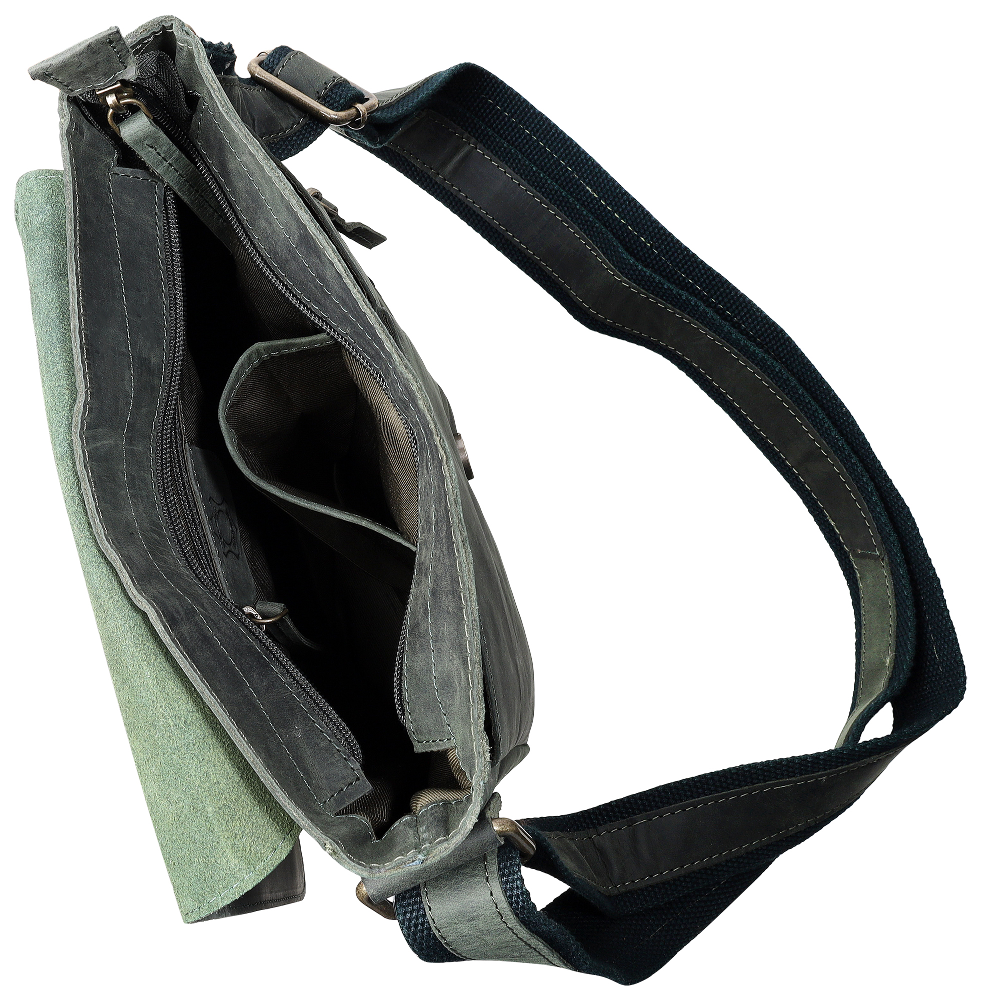 Produktinformationen "Leonardo Verrelli, Echtleder Umhängetasche, verstellbarer Riemen, Überschlag mit Magnetverschluss, waldgrün"