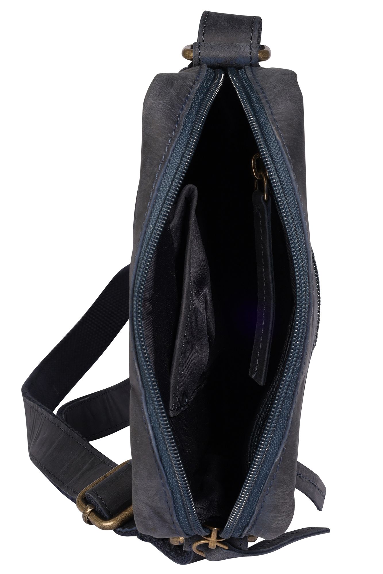 Produktinformationen "Leonardo Verrelli, Echtleder Umhängetasche, verstellbarer Riemen, mit Reißverschluss, dunkelblau"
