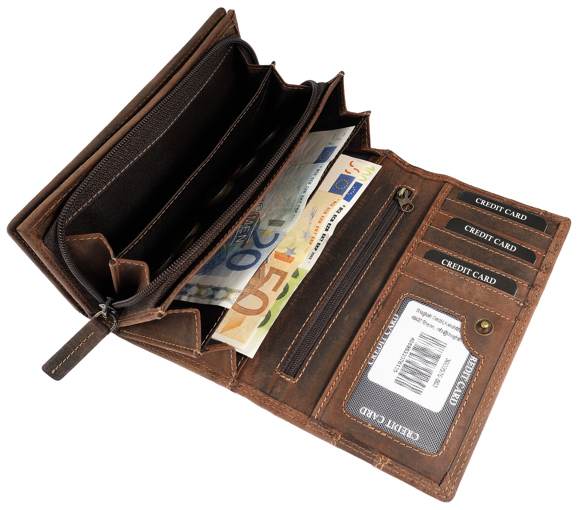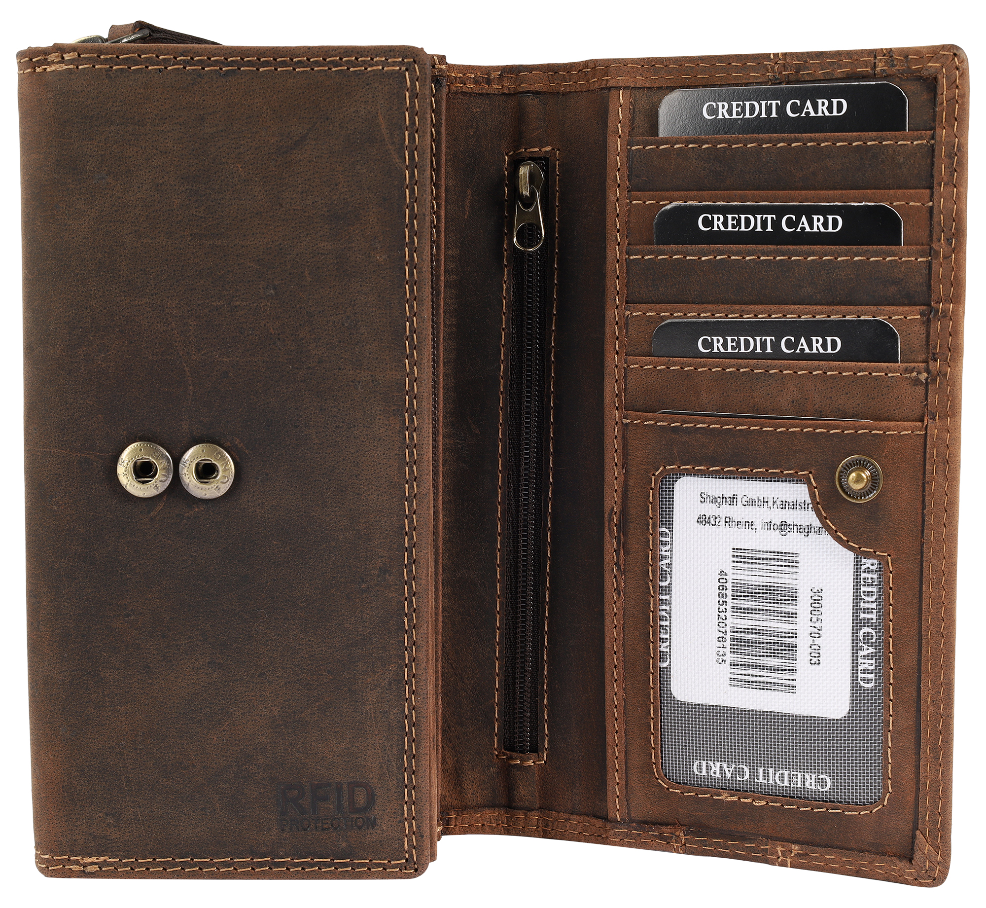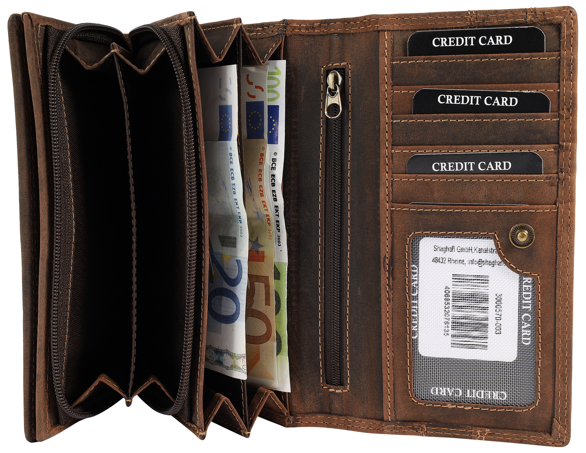 Gefertigt aus hochwertigem Echtleder in einem ansprechenden Vintage-Finish, überzeugt dieses längliche Portemonnaie durch sein durchdachtes Design und seine Funktionalität. Ein besonderer Blickfang ist die Ziernaht auf der Vorderseite, die der Geldbörse einen edlen und individuellen Charakter verleiht.