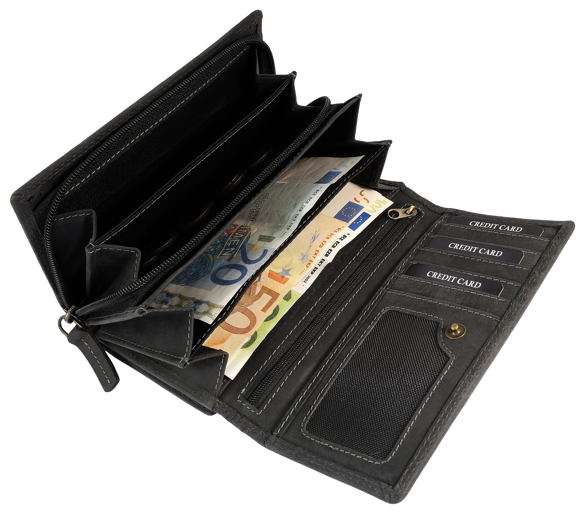 Produktinformationen "Leonardo Verrelli, Echtleder (Vintage) Damen Geldbörse, länglich & RFID, schwarz"