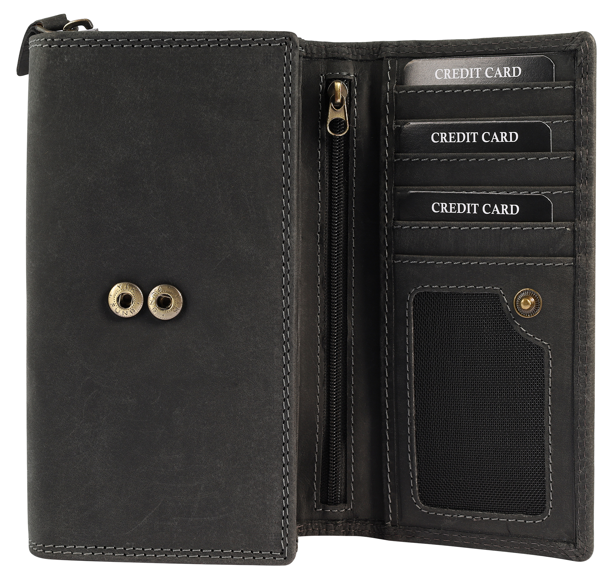 Gefertigt aus hochwertigem Echtleder in einem ansprechenden Vintage-Finish, überzeugt dieses längliche Portemonnaie durch sein durchdachtes Design und seine hervorragende Funktionalität. Die besondere Oberflächenbehandlung verleiht jeder Geldbörse einen individuellen Charakter und macht sie zu einem echten Blickfang..