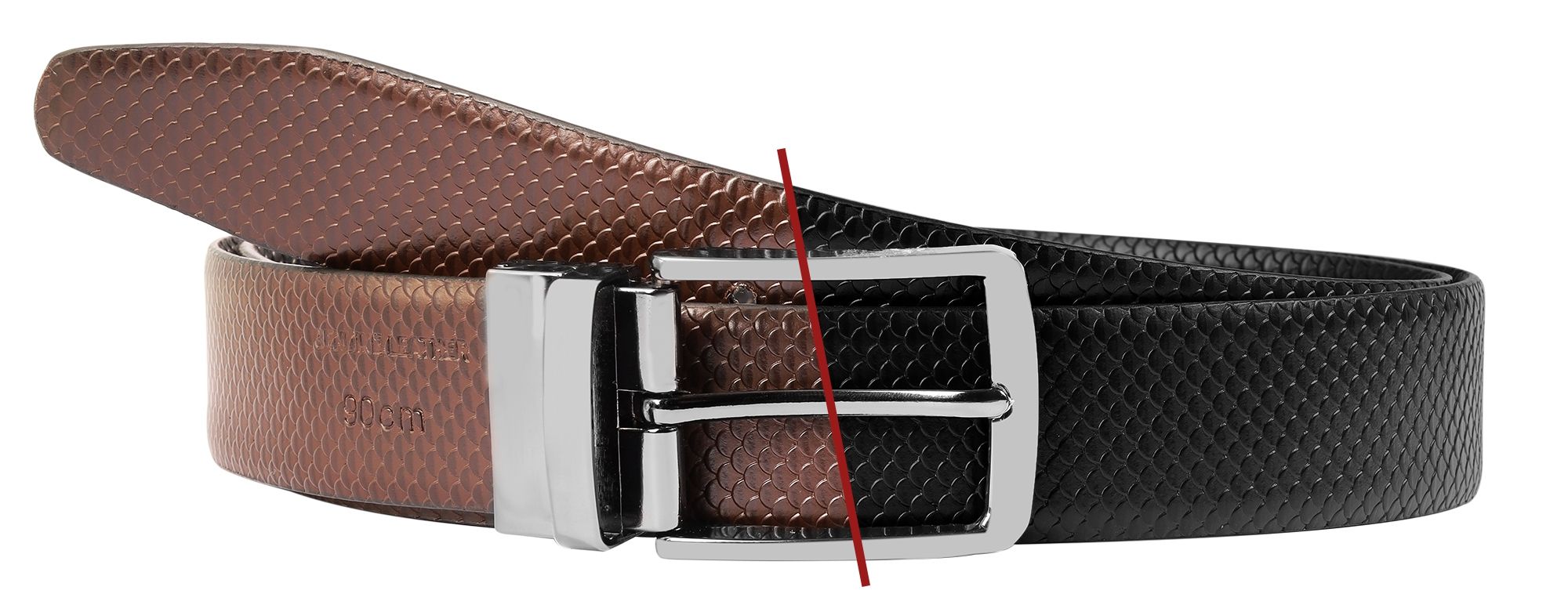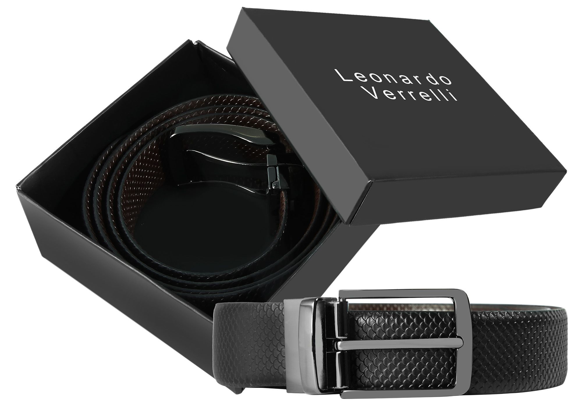 Produktinformationen "Leonardo Verrelli Echtleder Wendegürtel mit Box, Krokoprägung, kürzbar, schwarz/dunkelbraun, 120 cm"