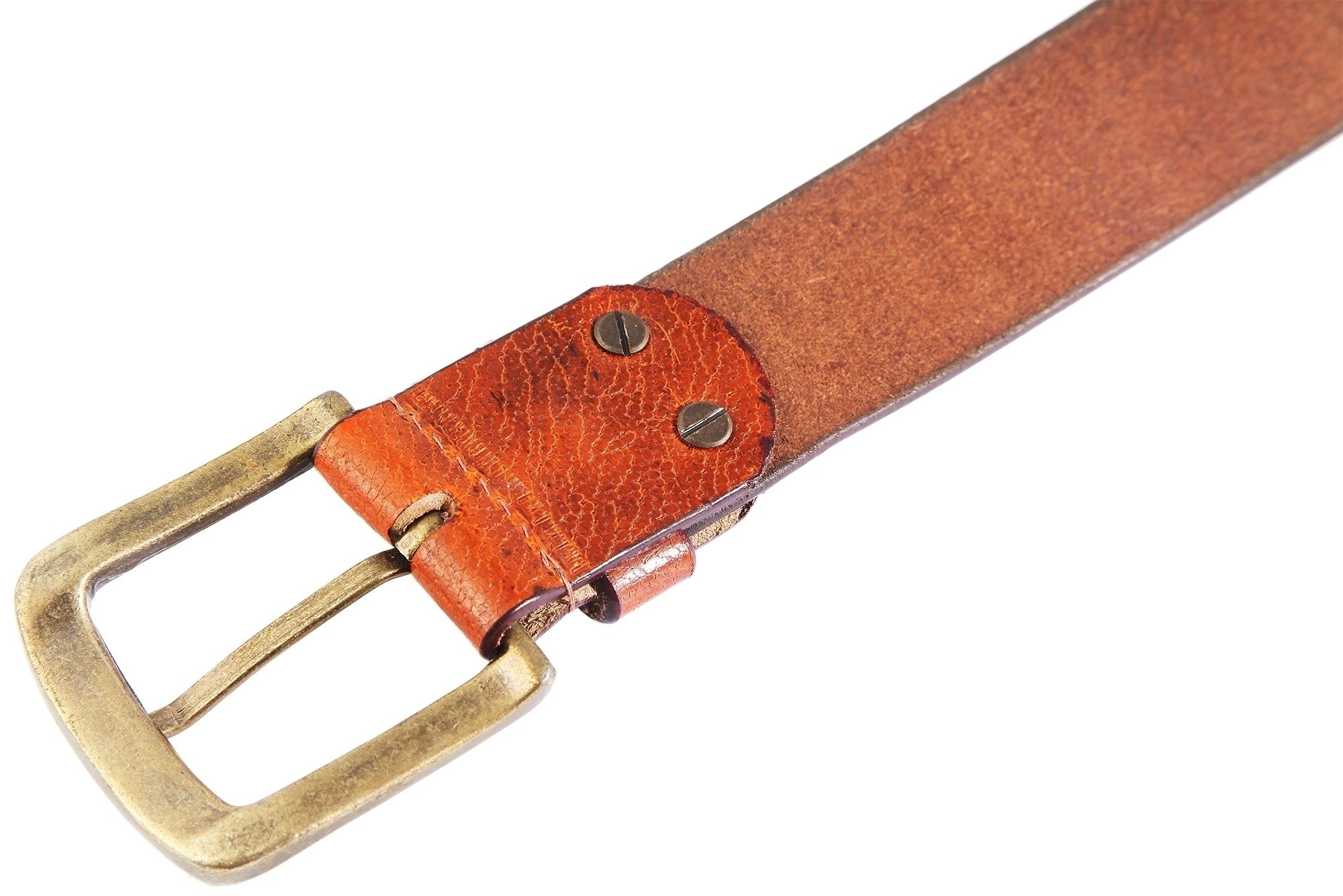 Der braune Echtleder Herrengürtel der Marke Leonardo Verrelli ist aus Büffelleder gefertigt und hat eine glatte Oberfläche mit feinem Strukturmuster. Die geglätteten Kanten sorgen für einen angenehmen Tragekomfort und runden den Anblick des modischen Gürtels gekonnt ab. Der Gürtel hat eine Bundweite von 100 cm, er ist 3,8 cm breit und 0,4 cm hoch. Zudem hat er eine aus Metall gefertigte, per Hand vernähte Dornschließe. Diese ist in einem dunklen Goldton beschichtet und gibt dem Gürtel einen Used-Look. Die Löcher für den Dorn der Schließe sind im Abstand von 2,0 cm angeordnet. Eine Besonderheit ist, dass der Gürtel in der Länge beliebig kürzbar ist. Dazu müssen unterhalb der Dornschließe mit einem Schraubendreher zwei Schrauben gelöst und die Länge beliebig angepasst werden. Durch das robuste Leder ist dieser Gürtel besonders belastbar und dadurch ein treuer Wegbegleiter, der sich zu zahlreichen Gelegenheiten tragen lässt.