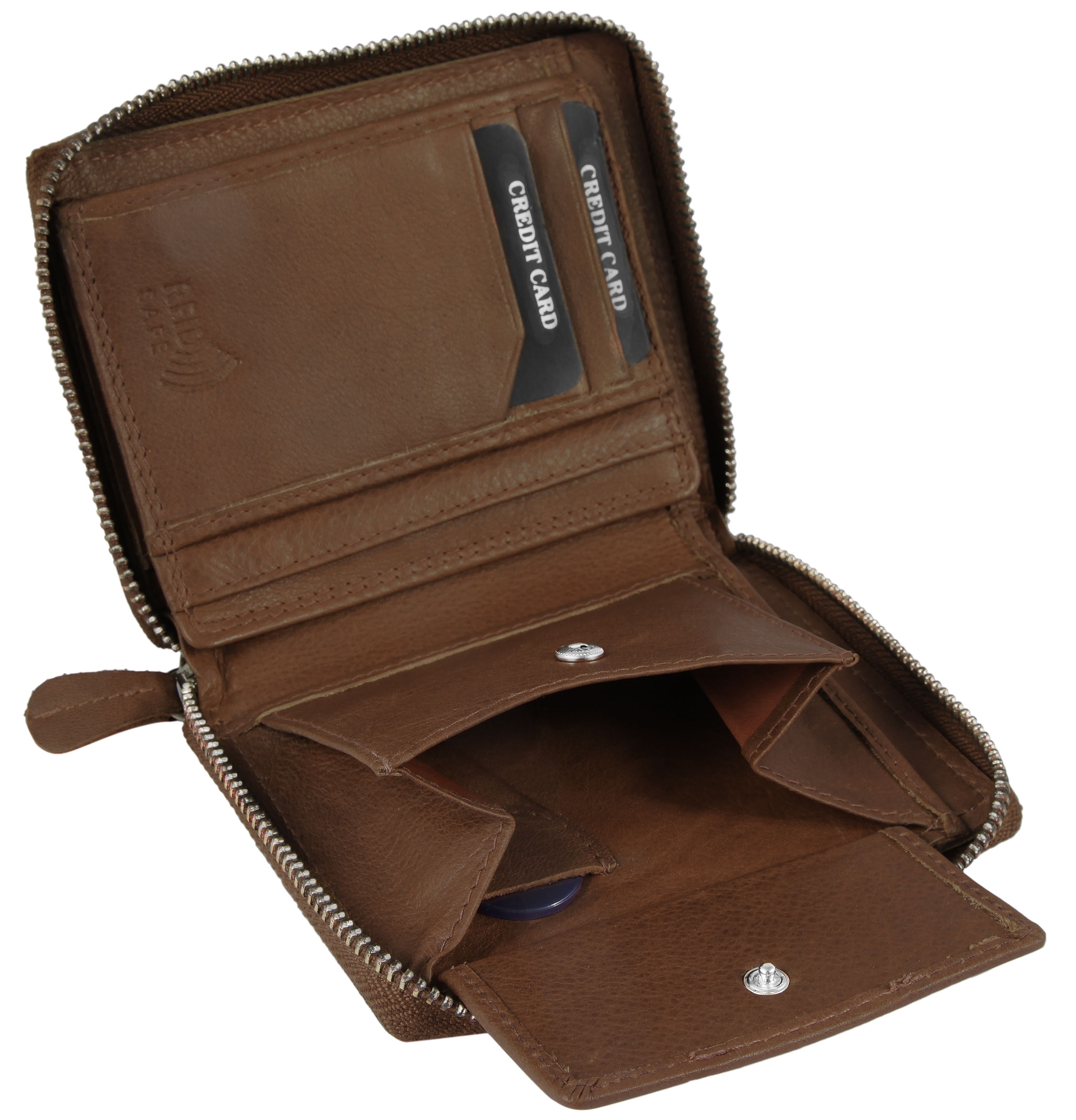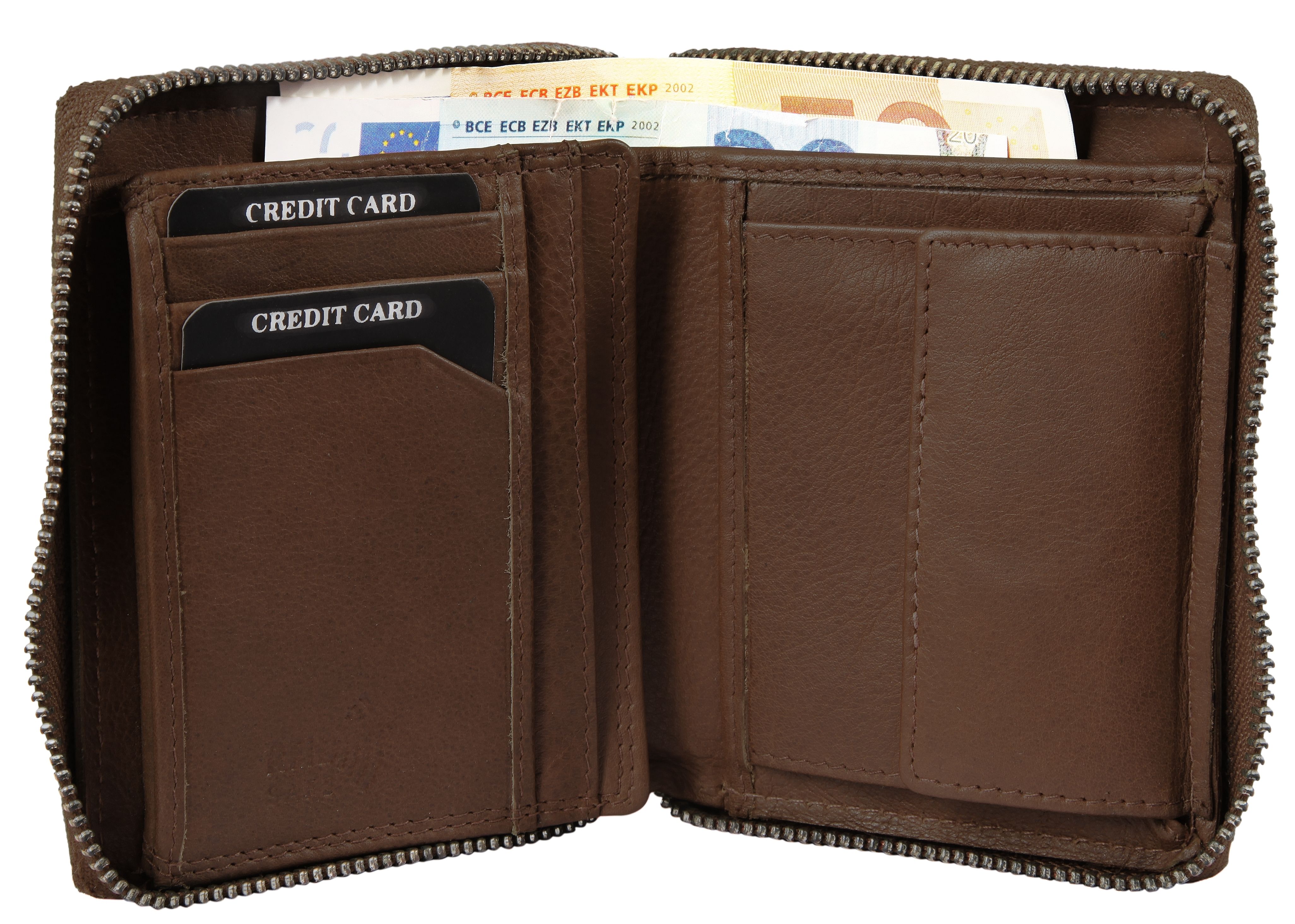 Die braune Geldbörse im Hochformat der Marke Leonardo Verrelli wurde aus echtem Rindsleder gefertigt und zeigt sich im modernen Vintagelook. Das Innenfutter besteht ebenfalls aus Echtleder. Die braune Doppelnaht im Außen- und Innenbereich des Portemonnaies sorgt für eine gute Haltbarkeit und Stabilität. Die Geldbörse ist ein wahres Platzwunder und bietet viel Stauraum für alle wichtigen Dokumente. Aufgeteilt ist die Börse in 6 Kreditkartenfächer, 1 Geldscheinfach, 1 Münzfach, 7 Einsteckfächer und 1 transparentes Ausweisfach. Des Weiteren wird die Börse durch einen Reißverschluss geöffnet und verschlossen, sodass der Inhalt sicher verstaut und geschützt ist. Die Größe ergibt sich ungefüllt aus einer Länge von 12,5 cm, einer Breite von 10,2 cm und einer Stärke von 2,9 cm. Dank des integrierten RFID-Schutzes sind jegliche Chip-Karten vor Betrugsangriffen geschützt. Geliefert wird das Produkt in einer tollen Geschenkbox von Leonardo Verrelli.