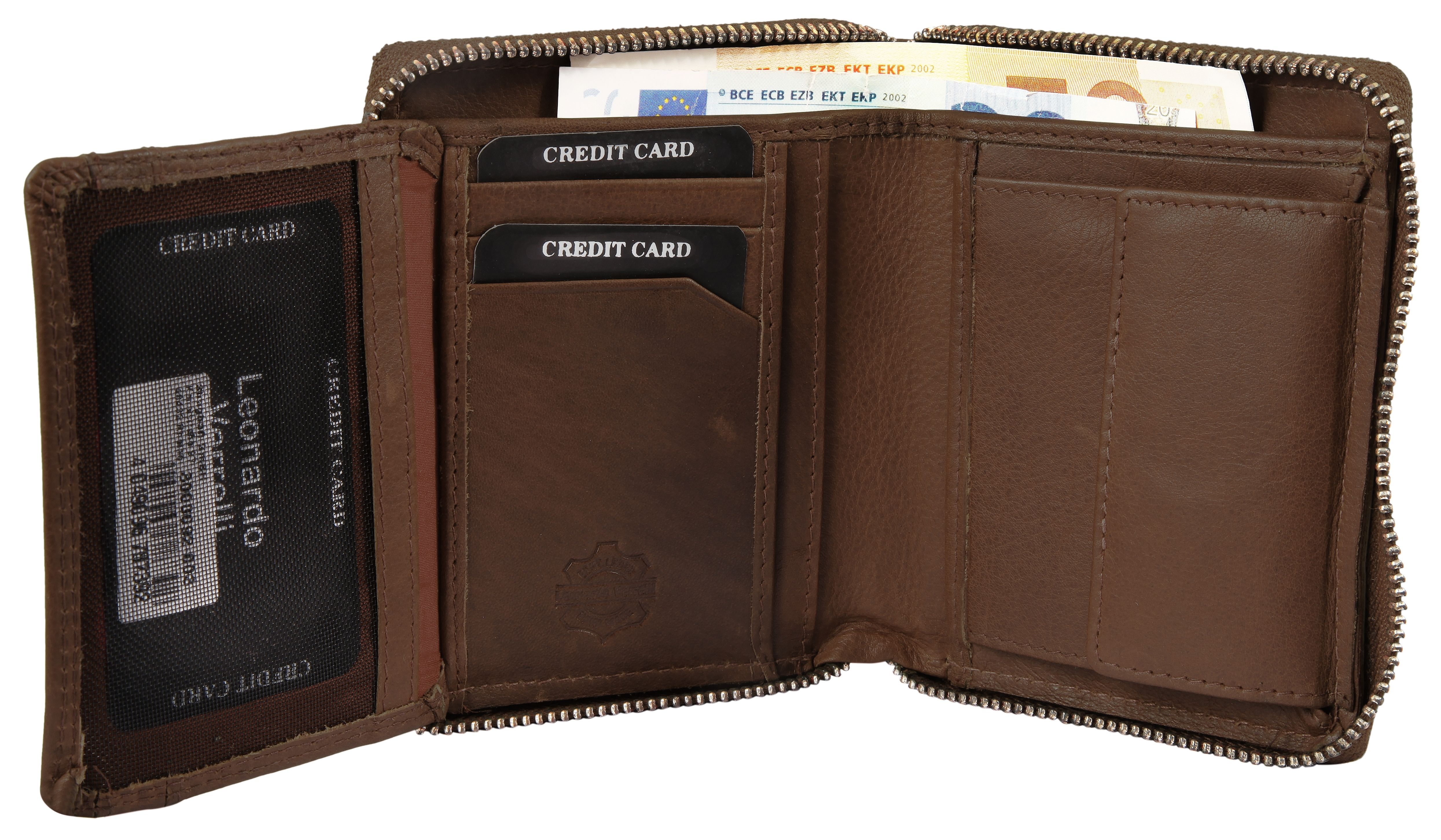 Produktinformationen "Leonardo Verrelli Geldbörse aus Echtleder mit RFID-Schutz in braun"