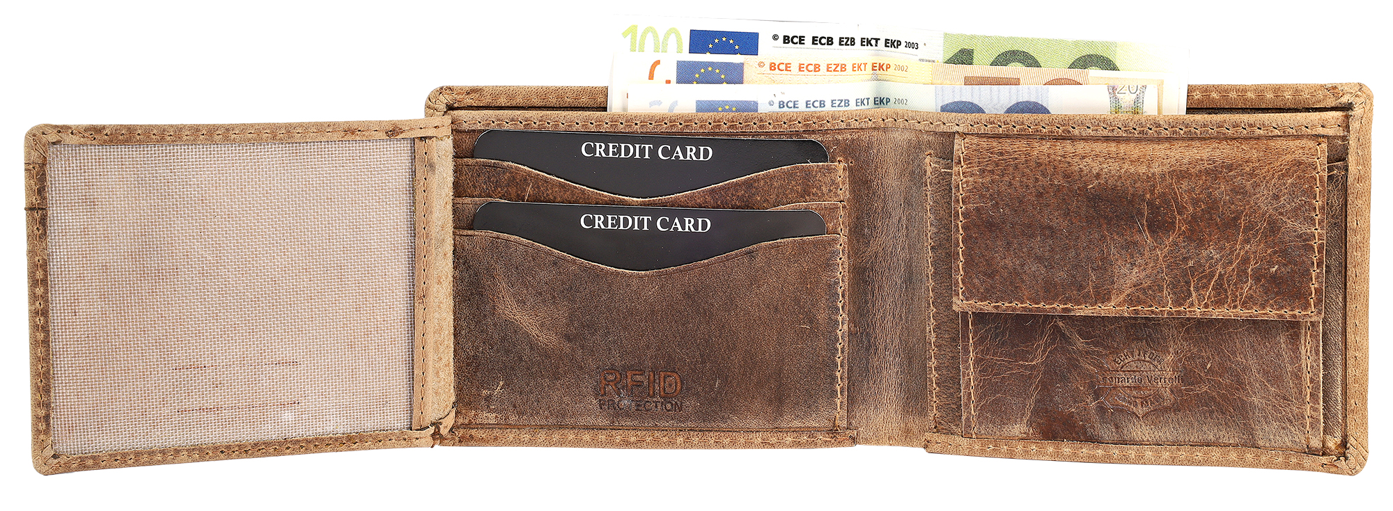 Produktinformationen "Leonardo Verrelli, Herren Echtleder Geldbörse, Querformat, vintage, RFID"
