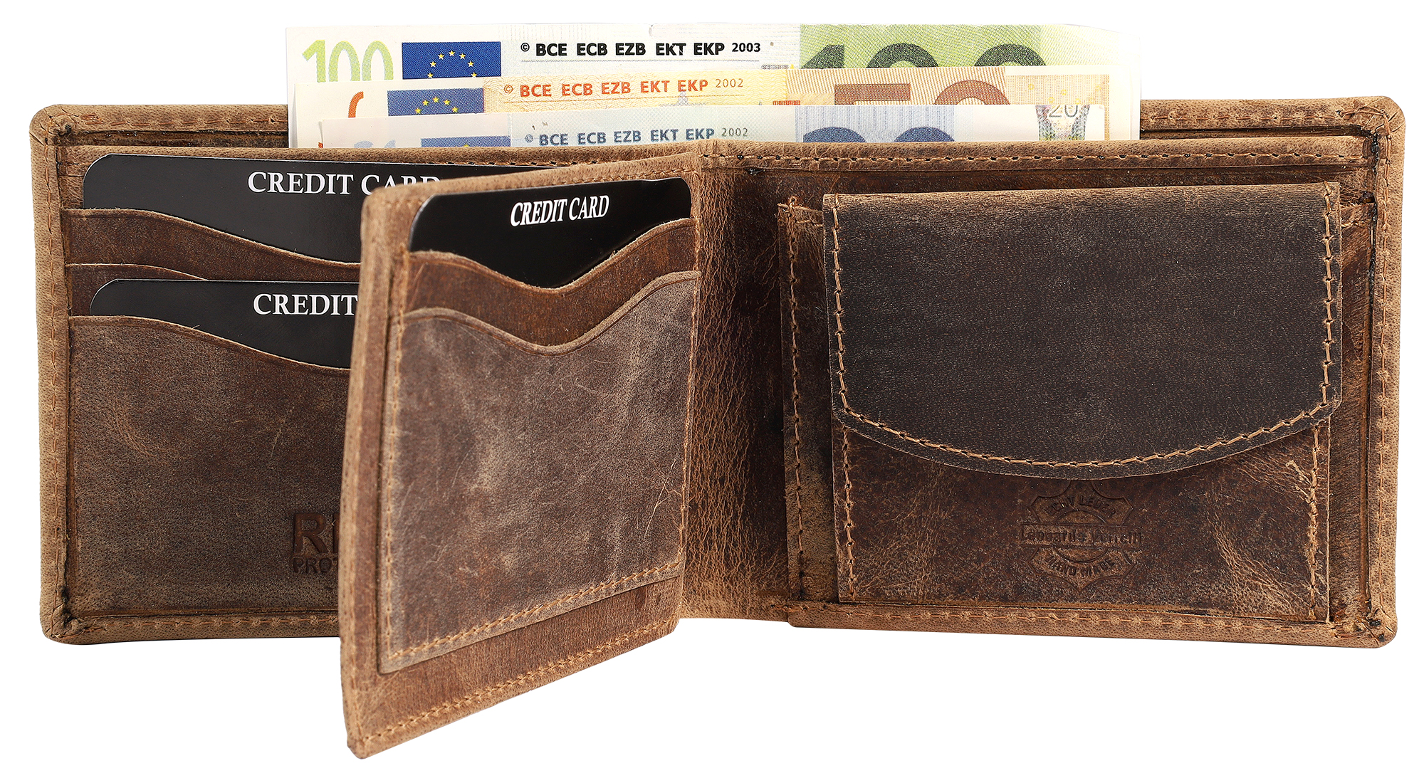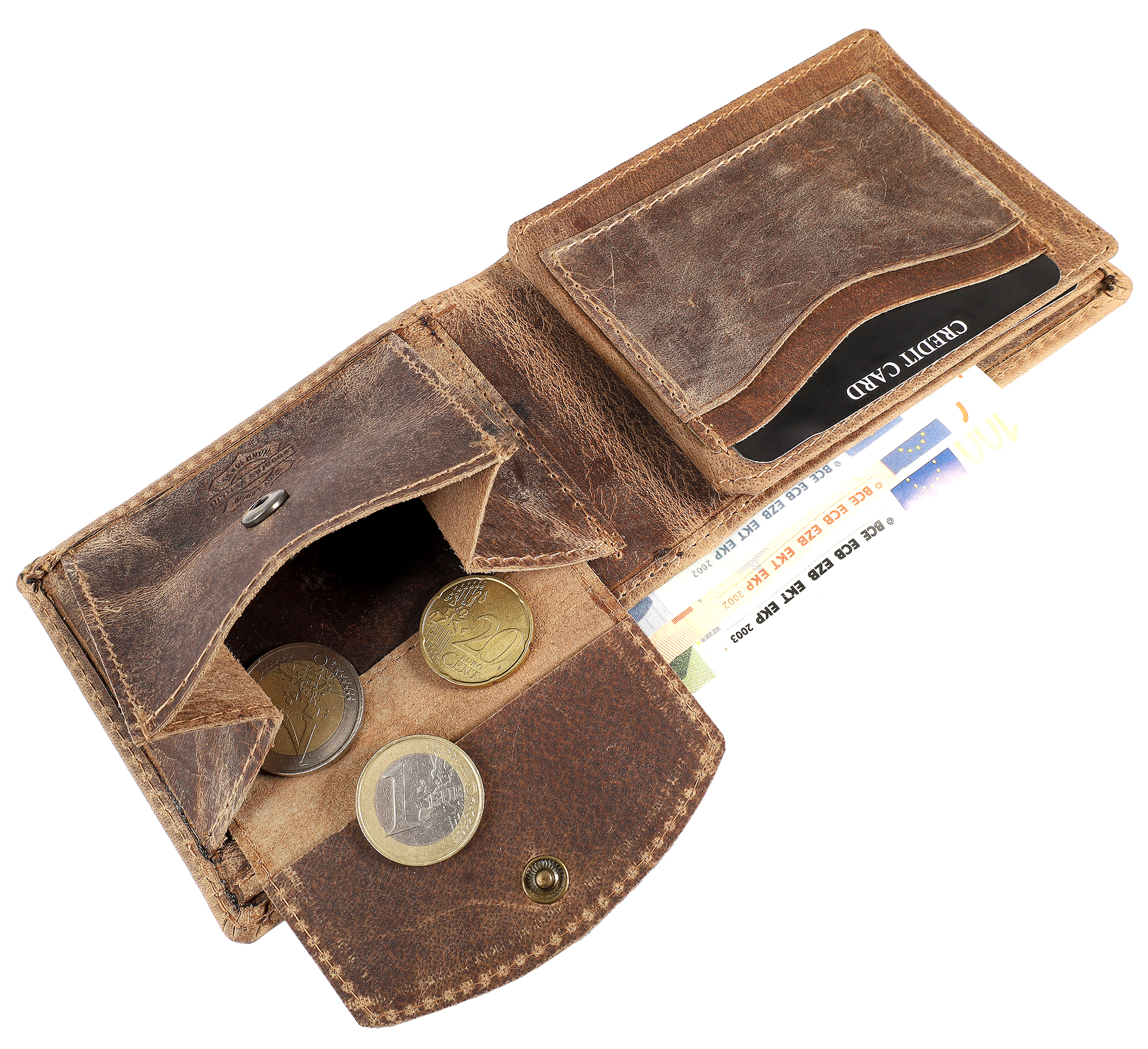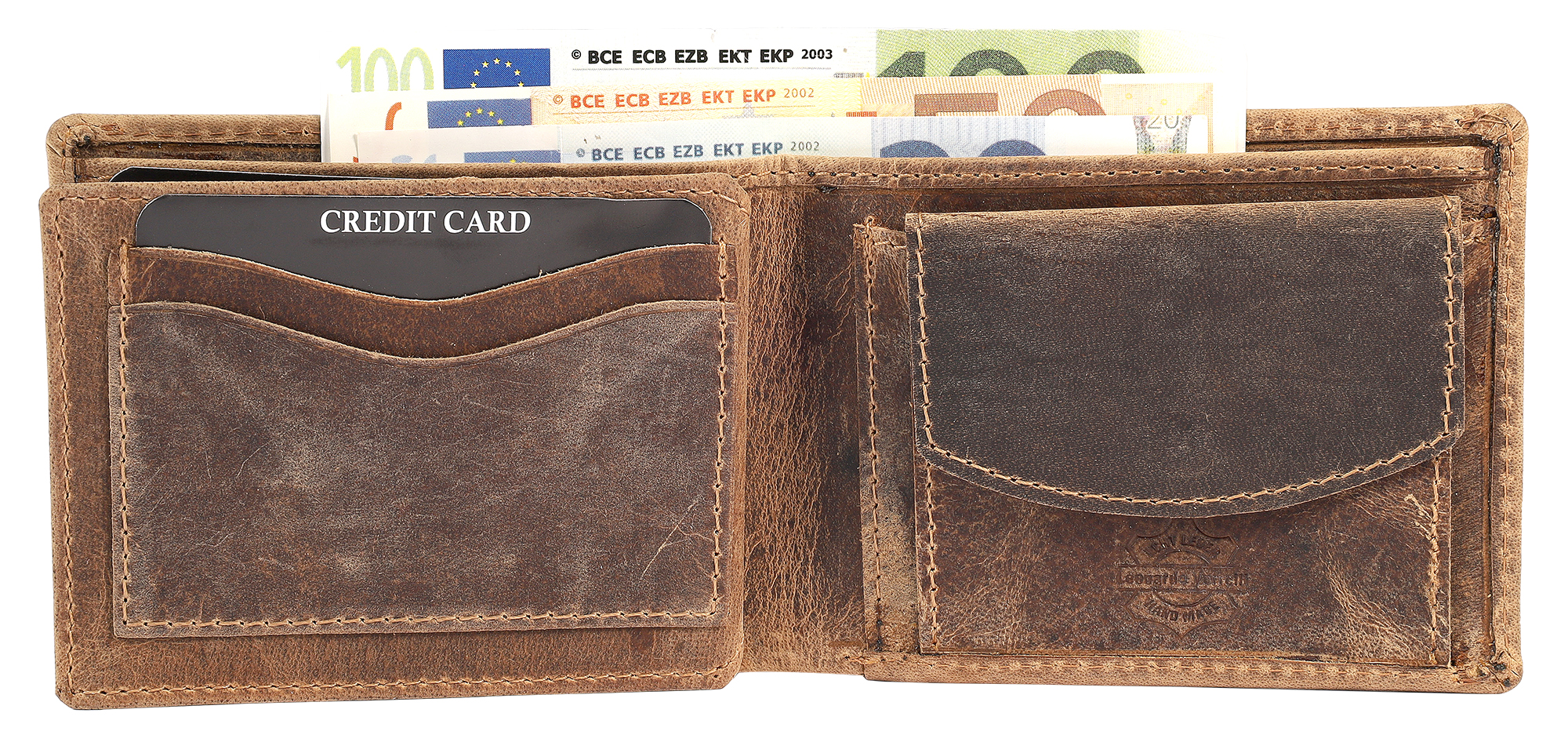 - Ein großes Geldscheinfach hält Ihre Scheine ordentlich verstaut.