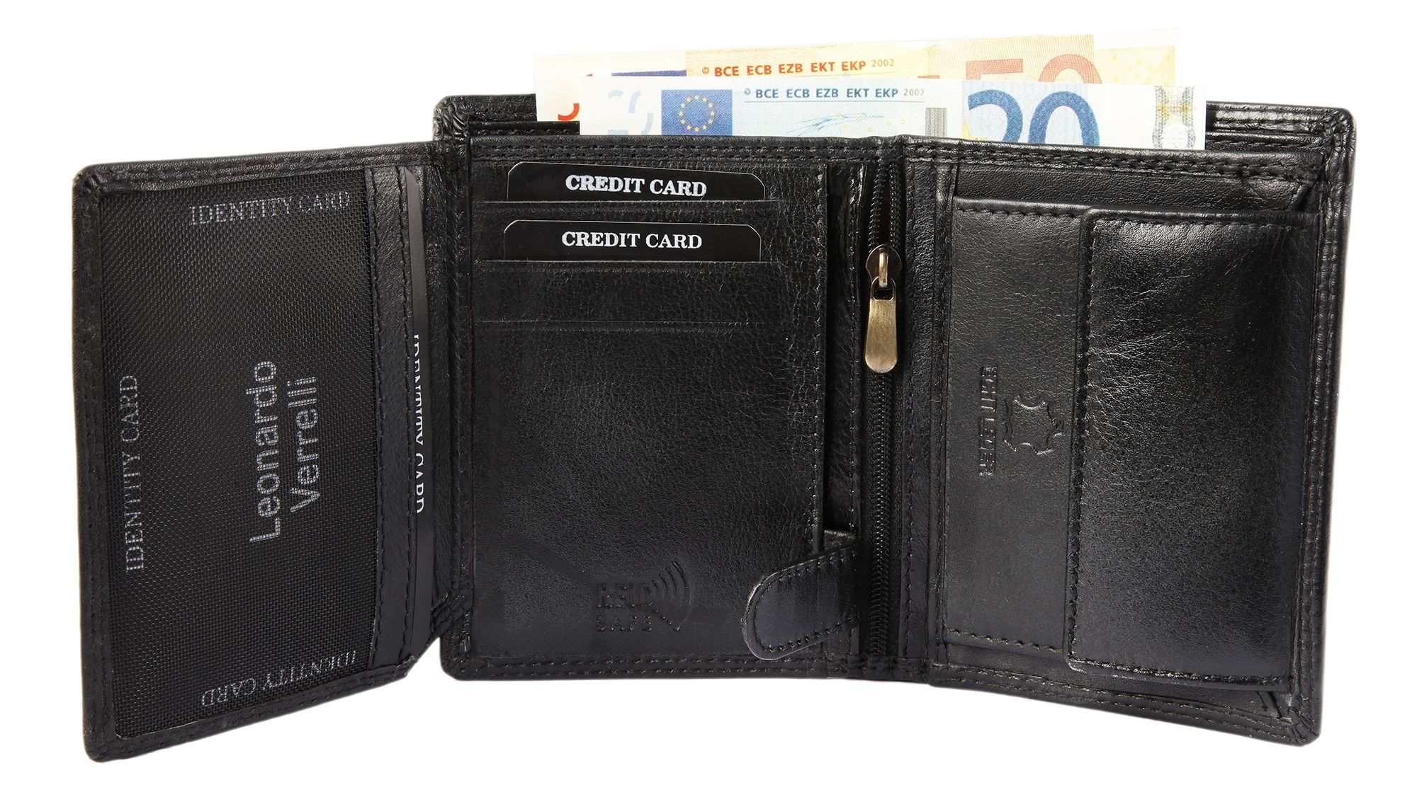 Produktinformationen "Leonardo Verrelli Herren Geldbörse aus Echtleder mit RFID-Schutz in schwarz"