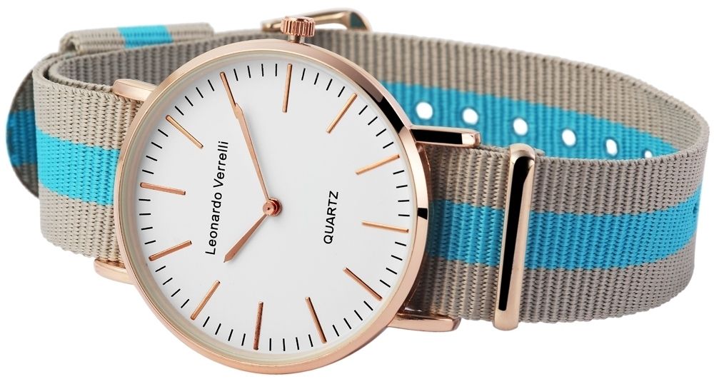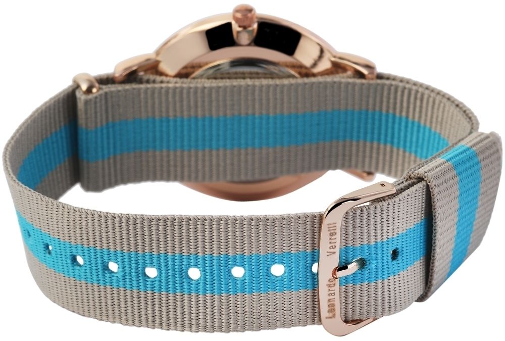 Produktinformationen "Leonardo Verrelli Unisexuhr mit Textilarmband, grau hellblau roségoldfarbig"