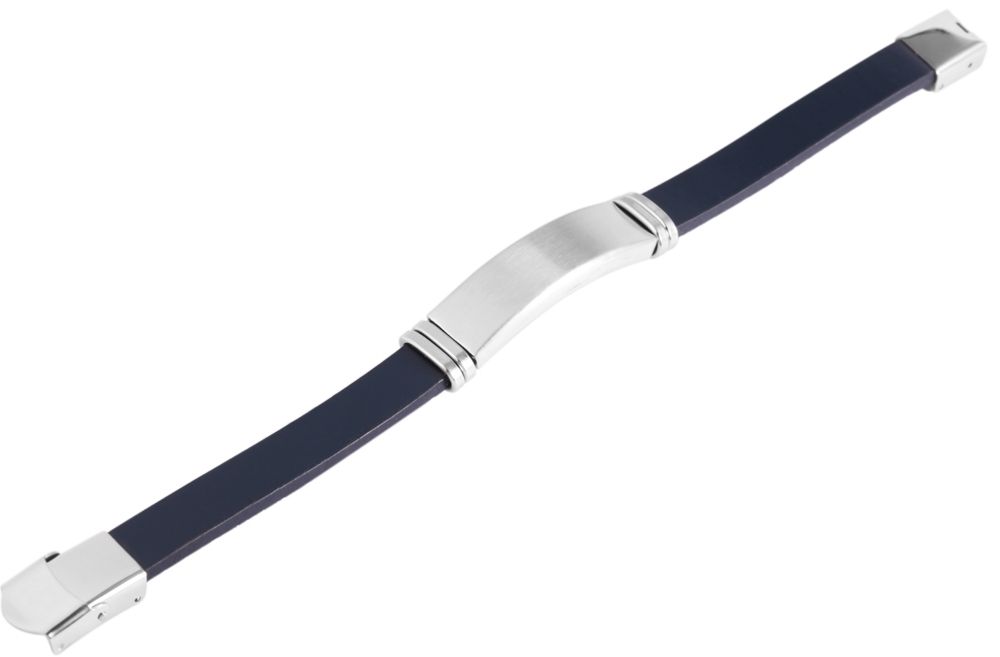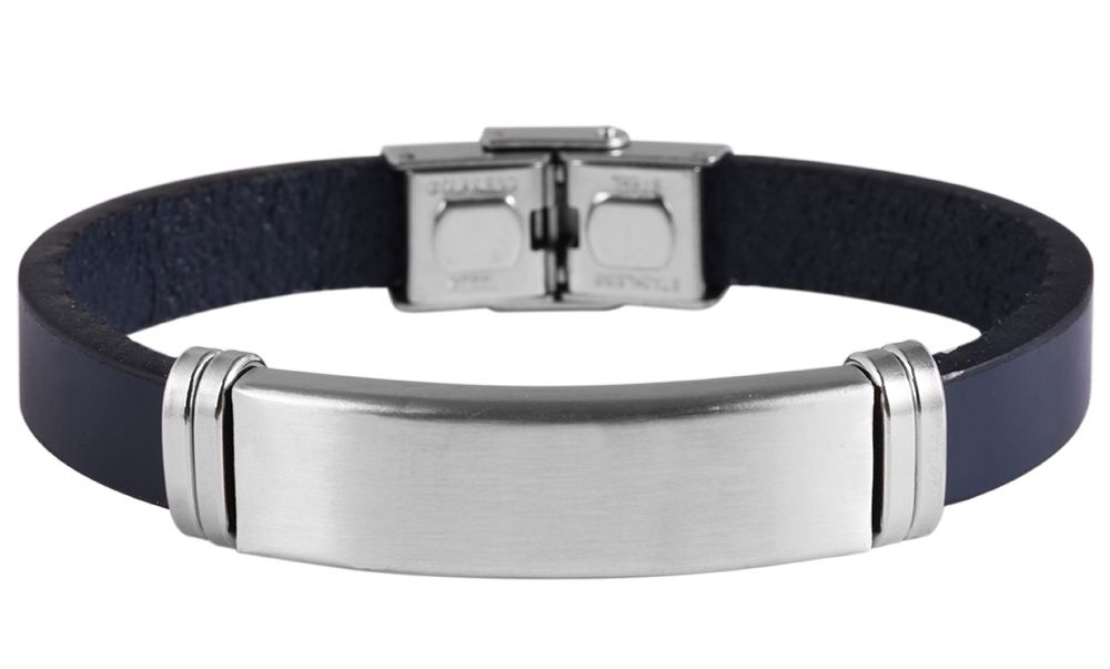 Produktinformationen ""Lino", Akzent Armband, Echtleder, Edelstahlgravurplatte, blau/silberfarben, 21 cm"