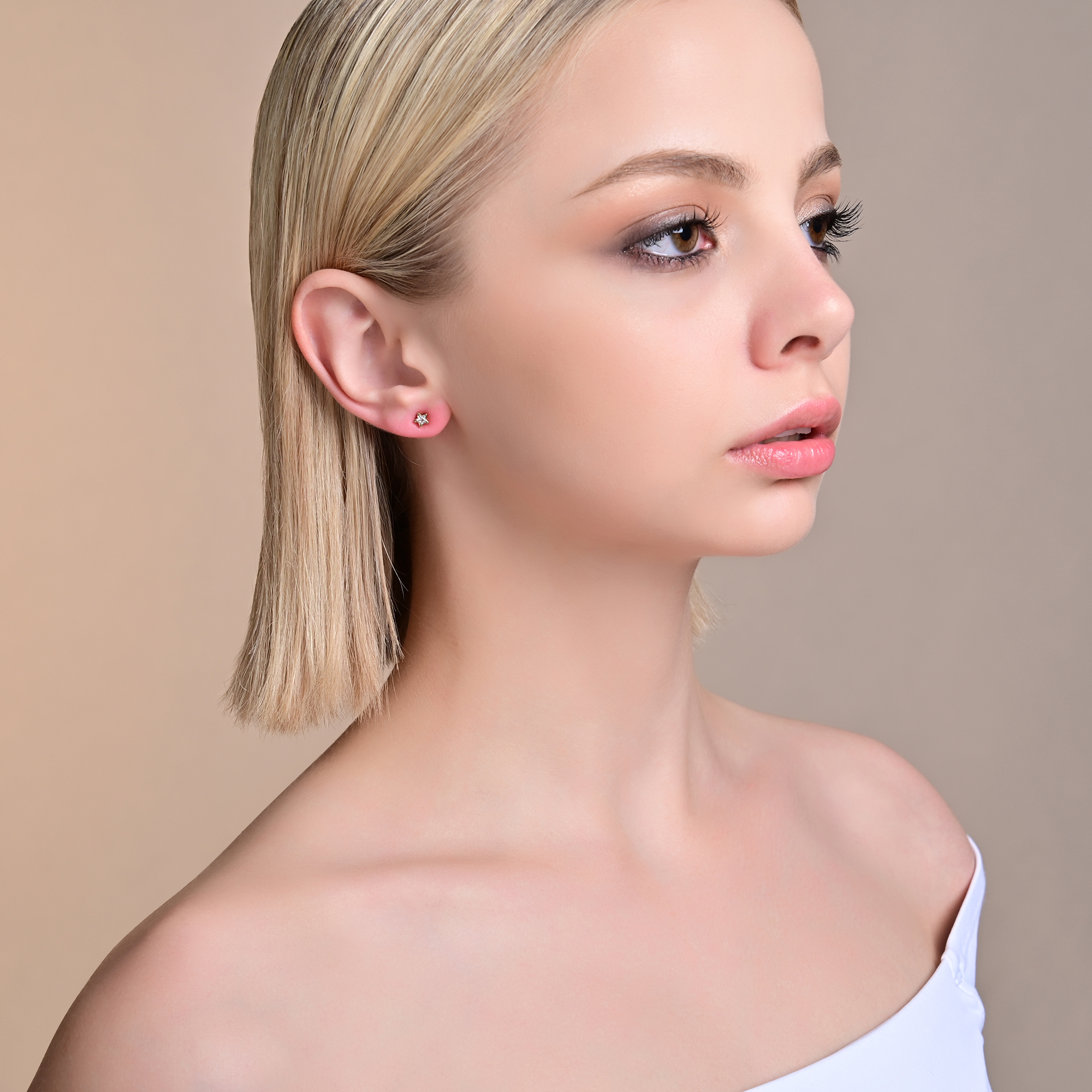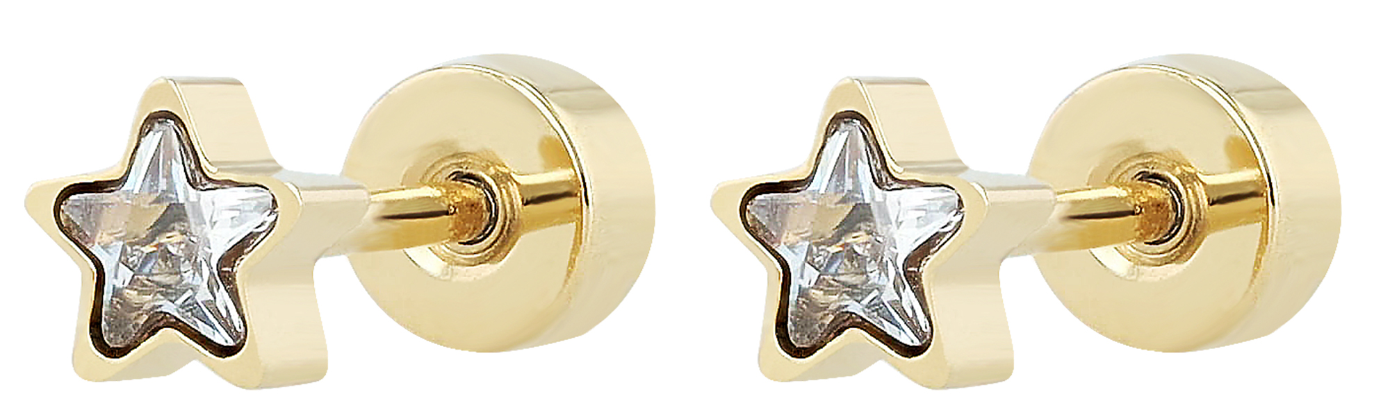 Die Ohrstecker der Marke Akzent in Form eines Sterns wurden aus Edelstahl gefertigt und sind goldfarben gehalten. Der Schraubverschluss, der zum Sichern der Ohrringe am Ohrloch dient, ist ebenfalls aus Edelstahl hergestellt. Der Steckerkopf verzaubert mit einem glitzernden, eingelassenen Similiestein. Die Maße ergeben sich aus einer Länge von 4 mm, einer Breite von ebenfalls 4 mm und einer Stärke von 2,5 mm. Diese Ohrstecker oder auch Piercing zeigen sich modern und klassisch zugleich, ideal zu jedem Stil und Anlass.