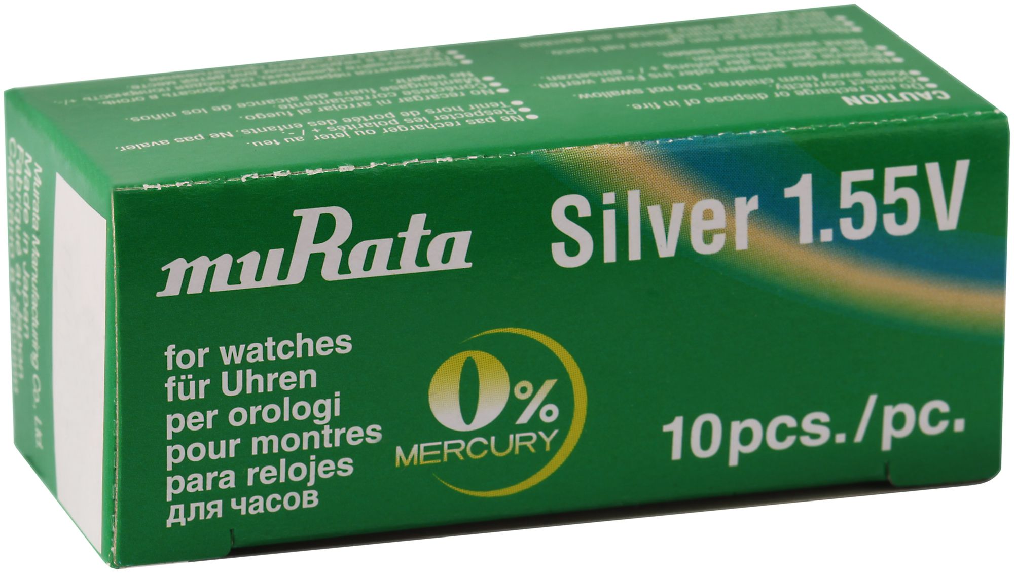 Knopfzellen der Marke Murata für Uhren mit 0% Quecksilber im 10er- Blister, einzeln verpackt. Verschiedene Größen für verschiedene Uhrwerke. Die elektrische Spannung für jede Batterie beträgt 1,55 V.