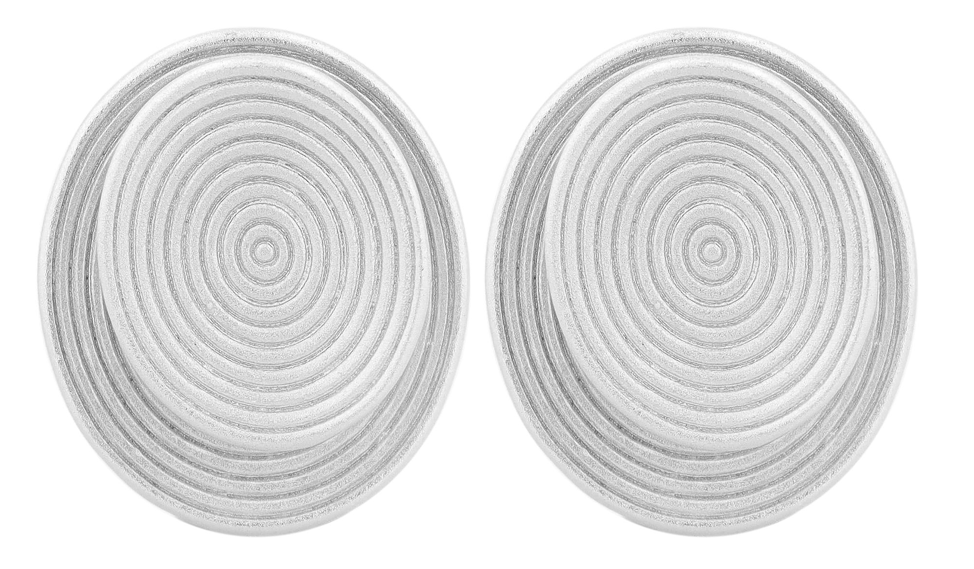 "Manisa" ist aus 925er Echt Silber gefertigt und besitzt ein mattes Finish. Besonders an diesem Ohrstecker, bestehend aus zwei konkaven Ovalen mit eingeprägtem psychedelischem Muster, ist, dass er auf variable Art und Weise getragen werden kann, da ein Teil des Ohrsteckers vor dem Ohr sitzt während sich das größere Oval dahinter befindet. Die Ovale mit dem fingerabdruckartigen Muster lassen sich frei variieren, so kann die Trägerin, wenn sie möchte, mit einem Schmetterlingsverschluss nur den vorderen Teil des Steckers am Ohr befestigen und tragen oder das vordere Oval schlicht nach oben drehen, um den Ohrring von einer Länge von 2 cm zu einer Länge von 2,8 cm zu variieren. "Manisa" ist ein massiver Ohrring mit einem Gewicht von ca. 4 g je Ohrstecker und einer Breite von 1,6 cm sowie einer Materialstärke von 0,15 cm. Für die moderne, selbstbewusste Frau in Alltag und Büro ein definitives Must-have und mit Sicherheit nicht nur ein Hingucker sondern auch haptisch attraktiv.