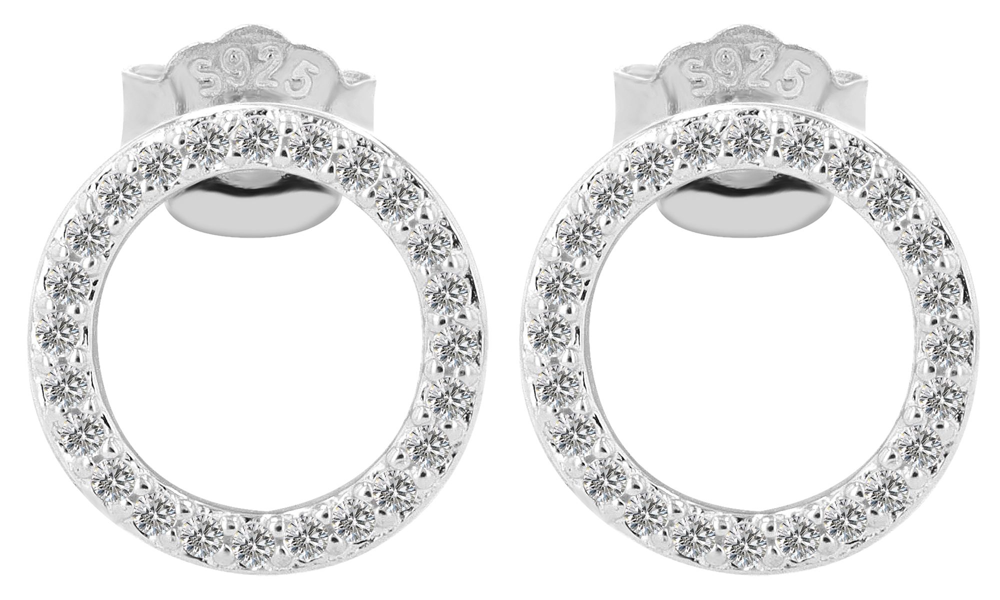 Produktinformationen ""Maresa" - 925/- Echt Silber, Ohrstecker, Runde offene Form Ø 11mm, silberfarben rhodiniert mit weißen Zirkonen"