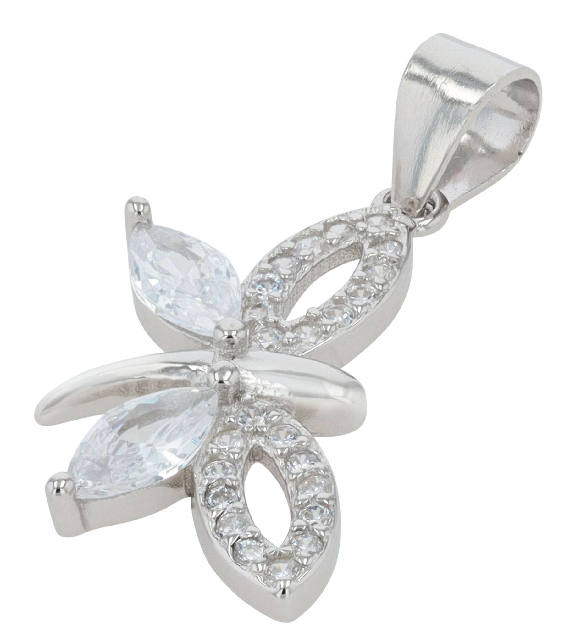 Hergestellt aus hochwertigem 925er Echtsilber und zusätzlich rhodiniert für langanhaltenden Glanz, strahlt dieser Anhänger mit einer Gesamtlänge von 2,35 cm eine zeitlose Eleganz aus. Verziert mit insgesamt 26 funkelnden Zirkonen, wird der "Marle" Anhänger durch die kleinen Flügel hervorgehoben, die mit einem großen Zirkon in den Maßen 6 x 3 mm dargestellt werden. Diese Details verleihen dem Anhänger eine einzigartige Anmut und ziehen bewundernde Blicke auf sich.