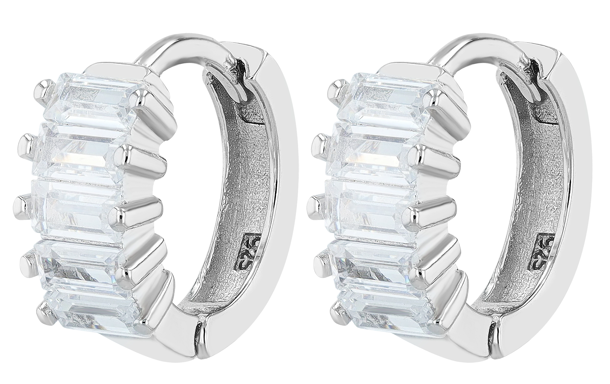Produktinformationen ""Marlies" 925/- Echt Silber Creole mit Zirkoniabesatz in Baguetteform, silberfarben rhodiniert"