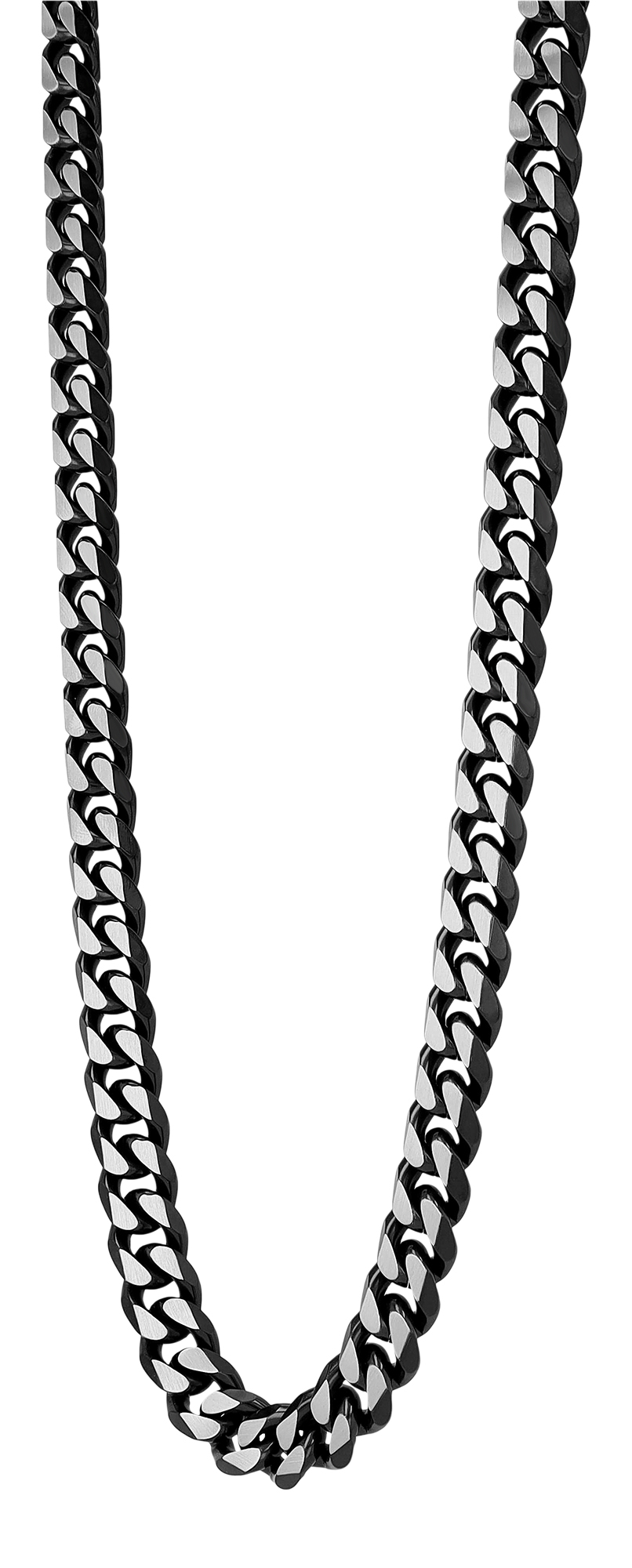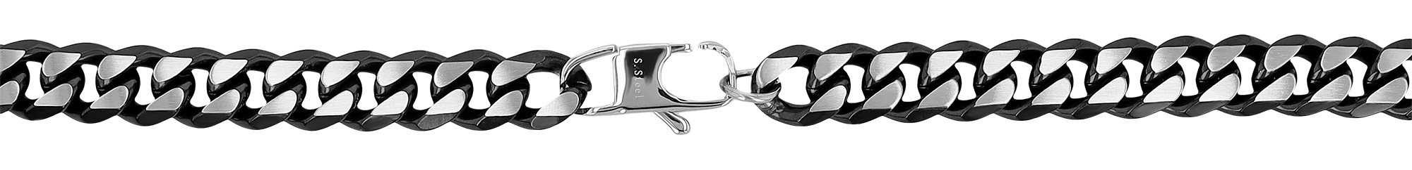 Gefertigt aus hochwertigem Edelstahl, überzeugt diese Kette mit ihrer robusten Verarbeitung und einem markanten Look. Mit einer Breite von 10 mm und einer Stärke von 4,5 mm ist sie ein echtes Schwergewicht. Die silberfarbene Oberfläche wird durch geschwärzte Highlights effektvoll in Szene gesetzt.
