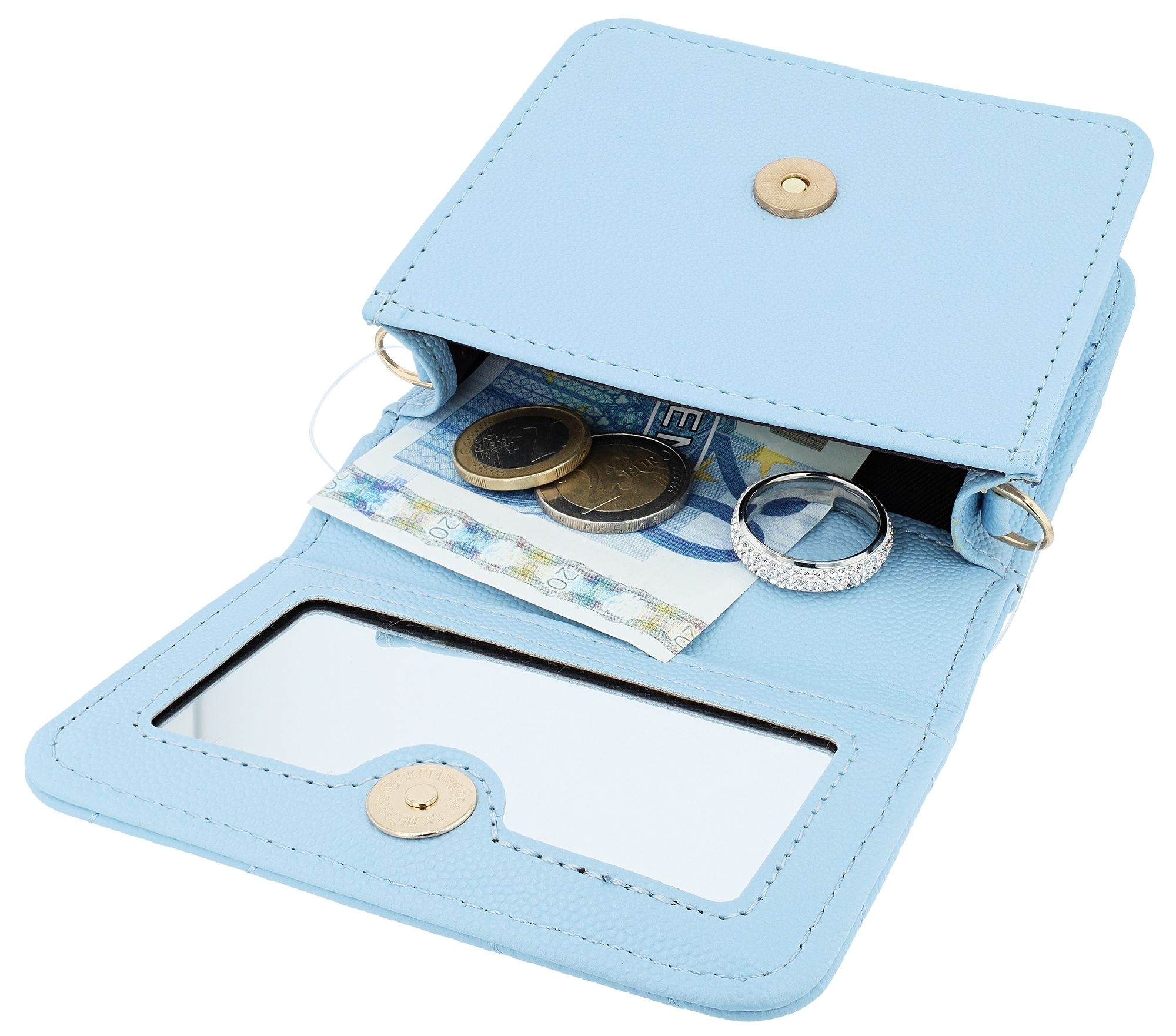 Produktinformationen "Mini Tasche mit Steppnaht und Spiegel innen, Lederimitat, hellblau"