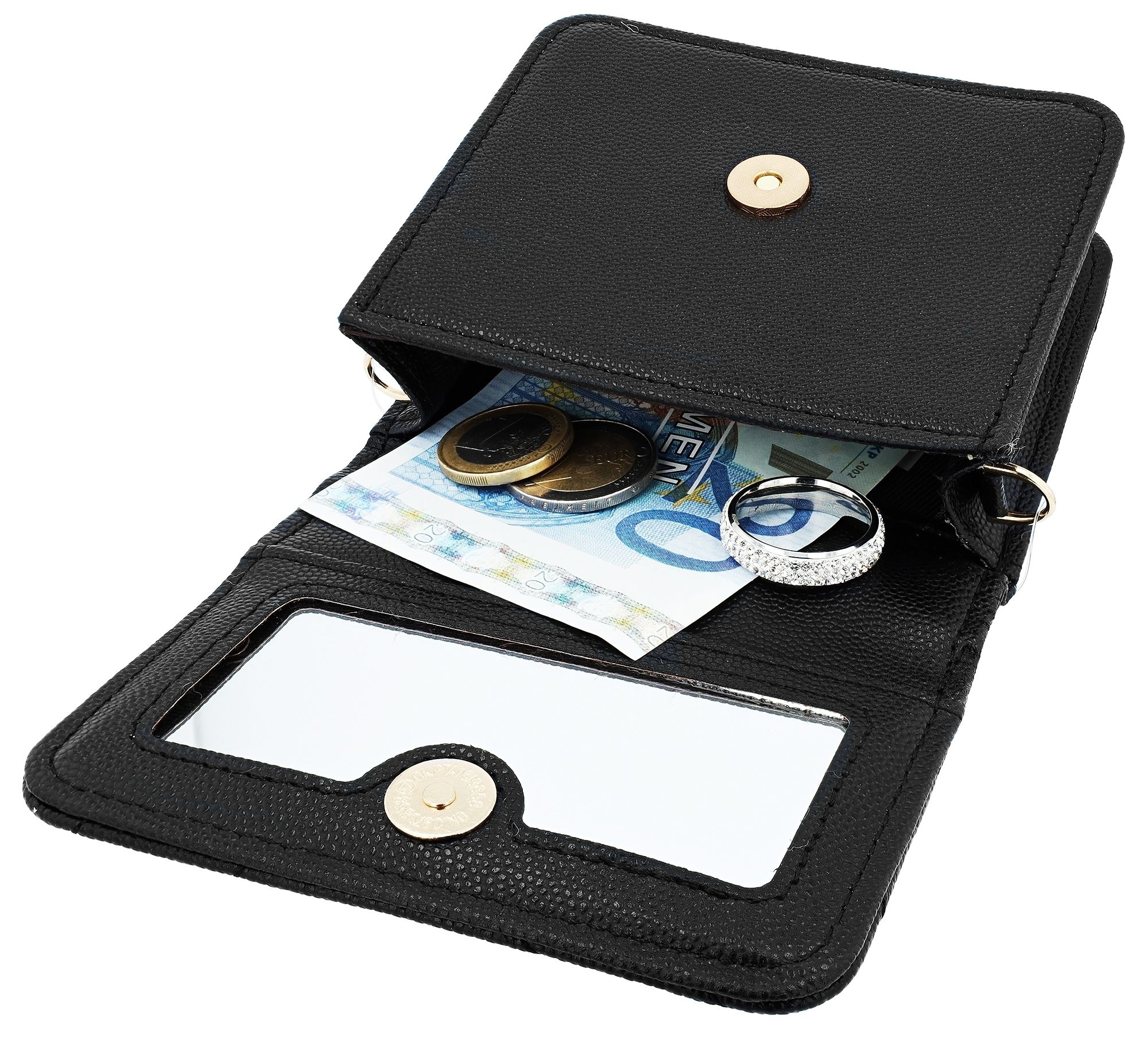 Produktinformationen "Mini Tasche mit Steppnaht und Spiegel innen, Lederimitat, schwarz"