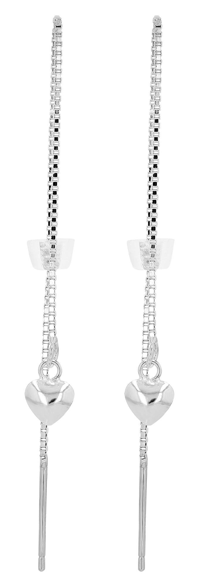 "Mirana" ein raffinierter Durchzieher-Ohrring als Schmuckstück für die jüngere Generation mit einer Gesamtlänge von 10,2 cm mit einem schlichten, kleinem Herz am Ende der Kette. Das Schmuckstück ist aus 925er Silber und die rhodinierte Oberfläche sorgt für einen anhaltenden Glanz und schützt das Silber vor dem Anlaufen. Wird als Durchzieher ohne Verschluss einfach durch die Ohrlöcher gezogen, die Länge kann je nach Gefallen verändert werden. Ein schlichtes Accessoire das jedem Outfit eine stilvolle Note verleiht.