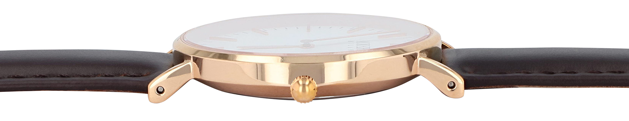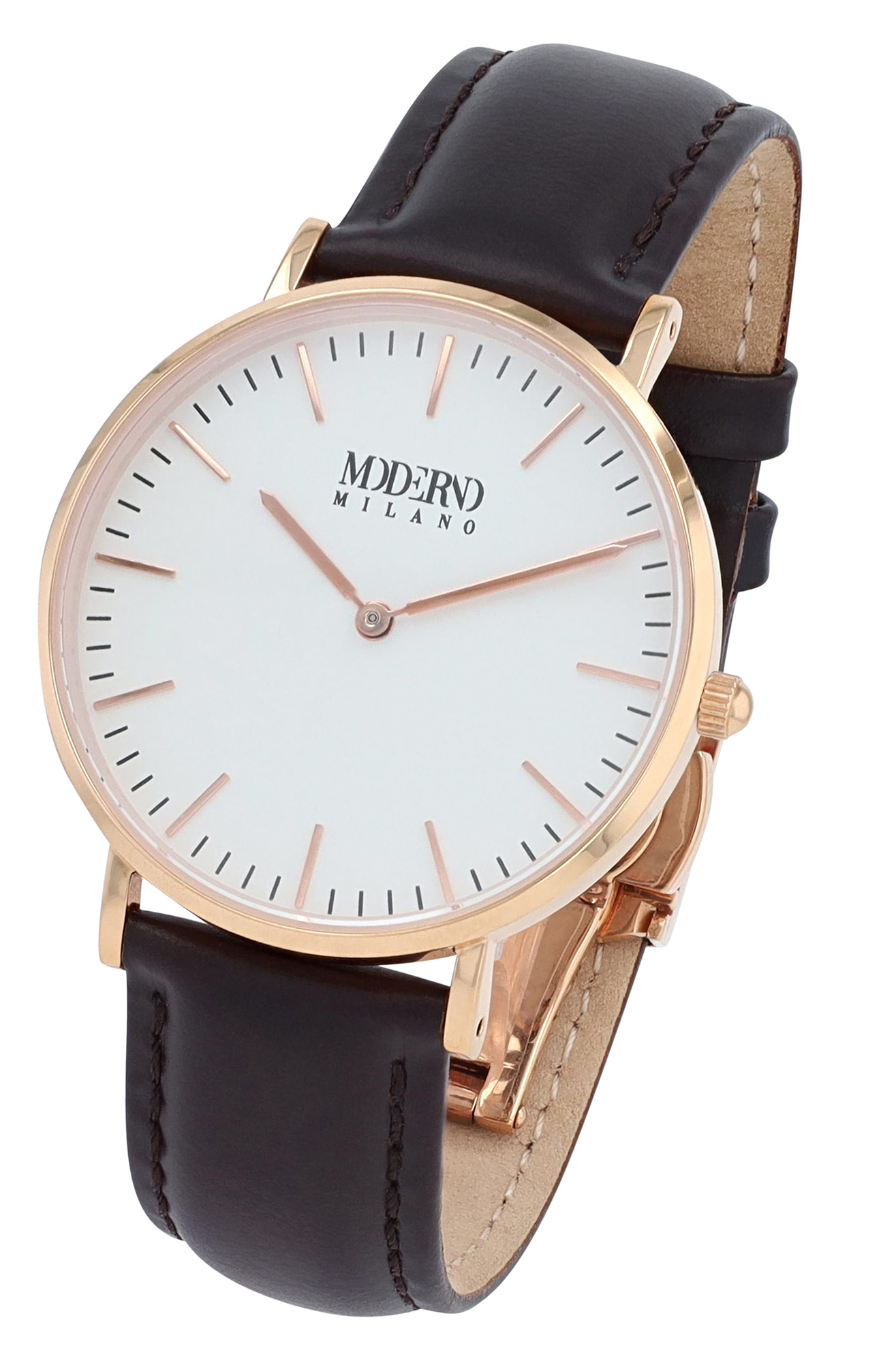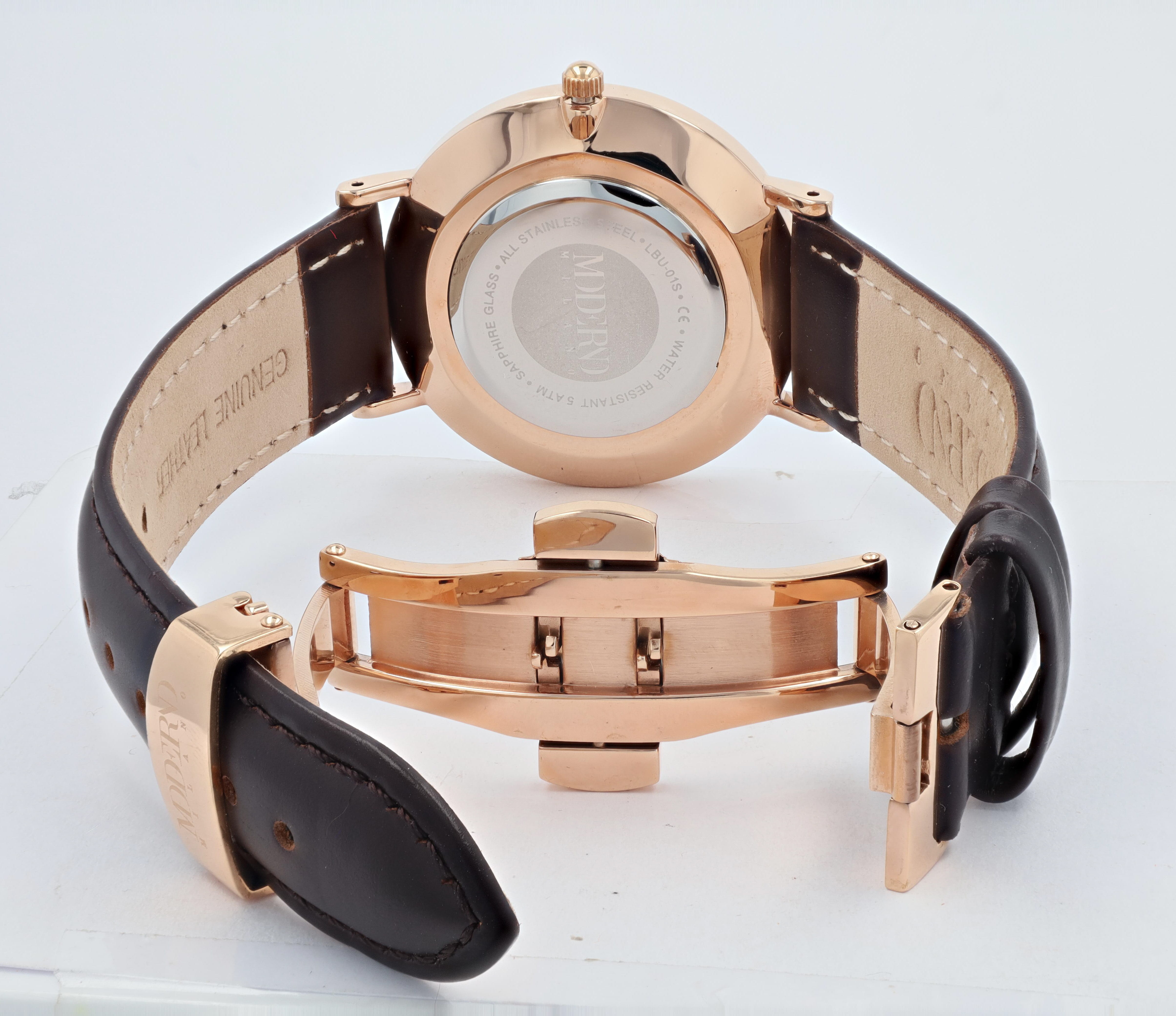 Produktinformationen "Moderno Milano Edelstahl Damenuhr Ø 36,5 mm, Echtlederband, Saphirglas, dunkelbraun/ rosegoldfarben"