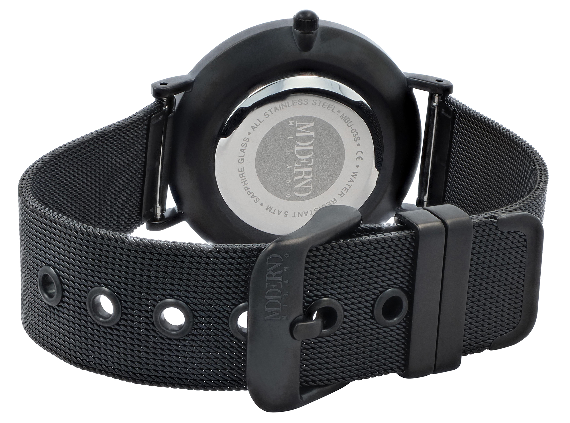 Produktinformationen "Moderno Milano Edelstahl Damenuhr Ø 36,5 mm, Meshband, Saphirglas, schwarz"