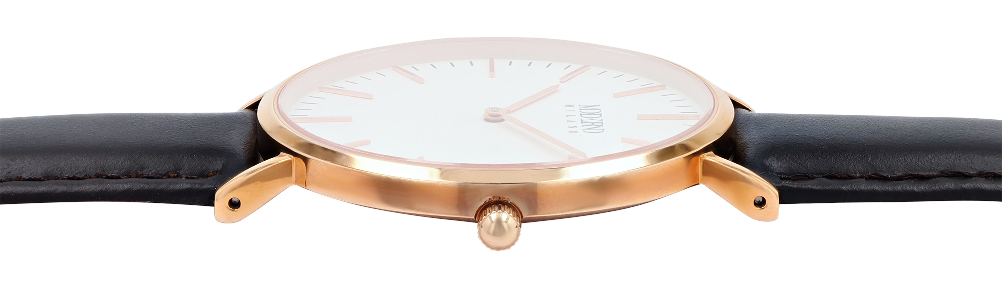 Entdecken Sie unsere sorgfältig abgestimmten Modellvarianten für jeden Geschmack. Wählen Sie für einen klassischen Kontrast das zeitlose schwarze Lederband in Kombination mit einem Gehäuse in Silber oder entscheiden Sie sich für warme Eleganz mit der edlen gold- oder roségoldfarbenen Gehäusevariante, die stilvoll durch ein braunes Lederband ergänzt wird.