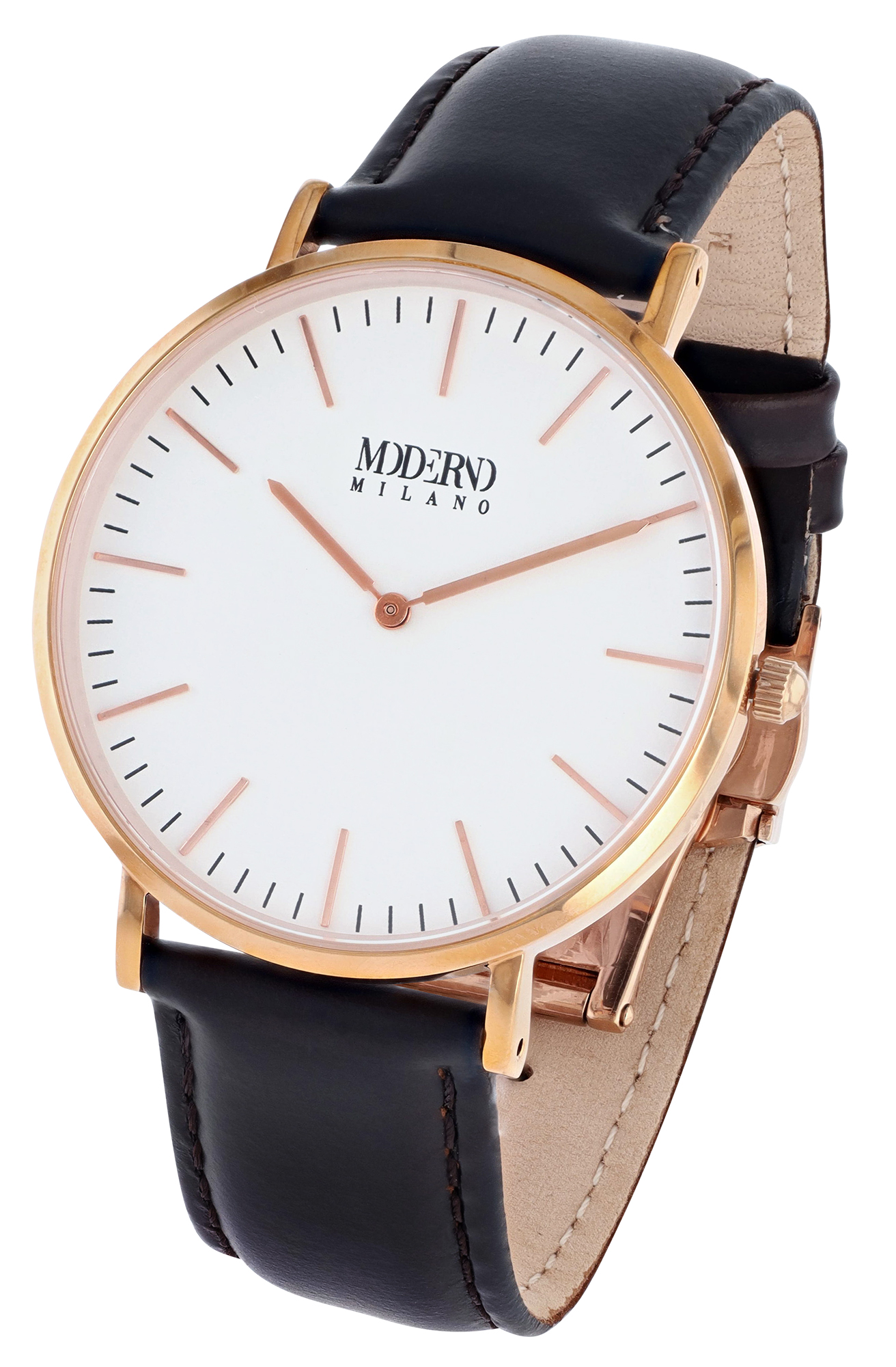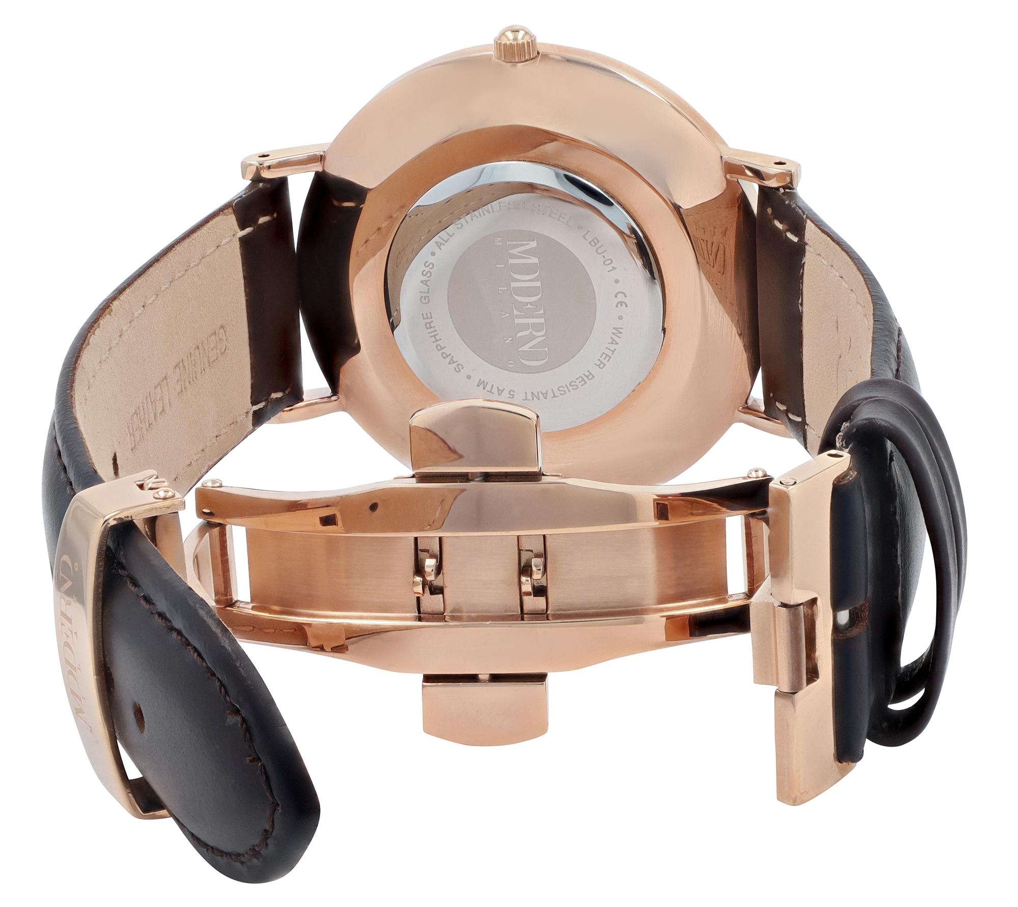 Produktinformationen "Moderno Milano Edelstahl Herrennuhr Ø 41 mm, Echtlederband, Saphirglas, dunkelbraun/ rosegoldfarben"