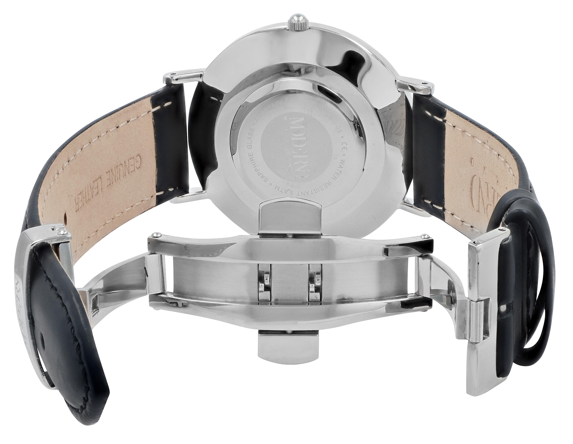 Produktinformationen "Moderno Milano Edelstahl Herrennuhr Ø 41 mm, Echtlederband, Saphirglas, schwarz/ silberfarben"