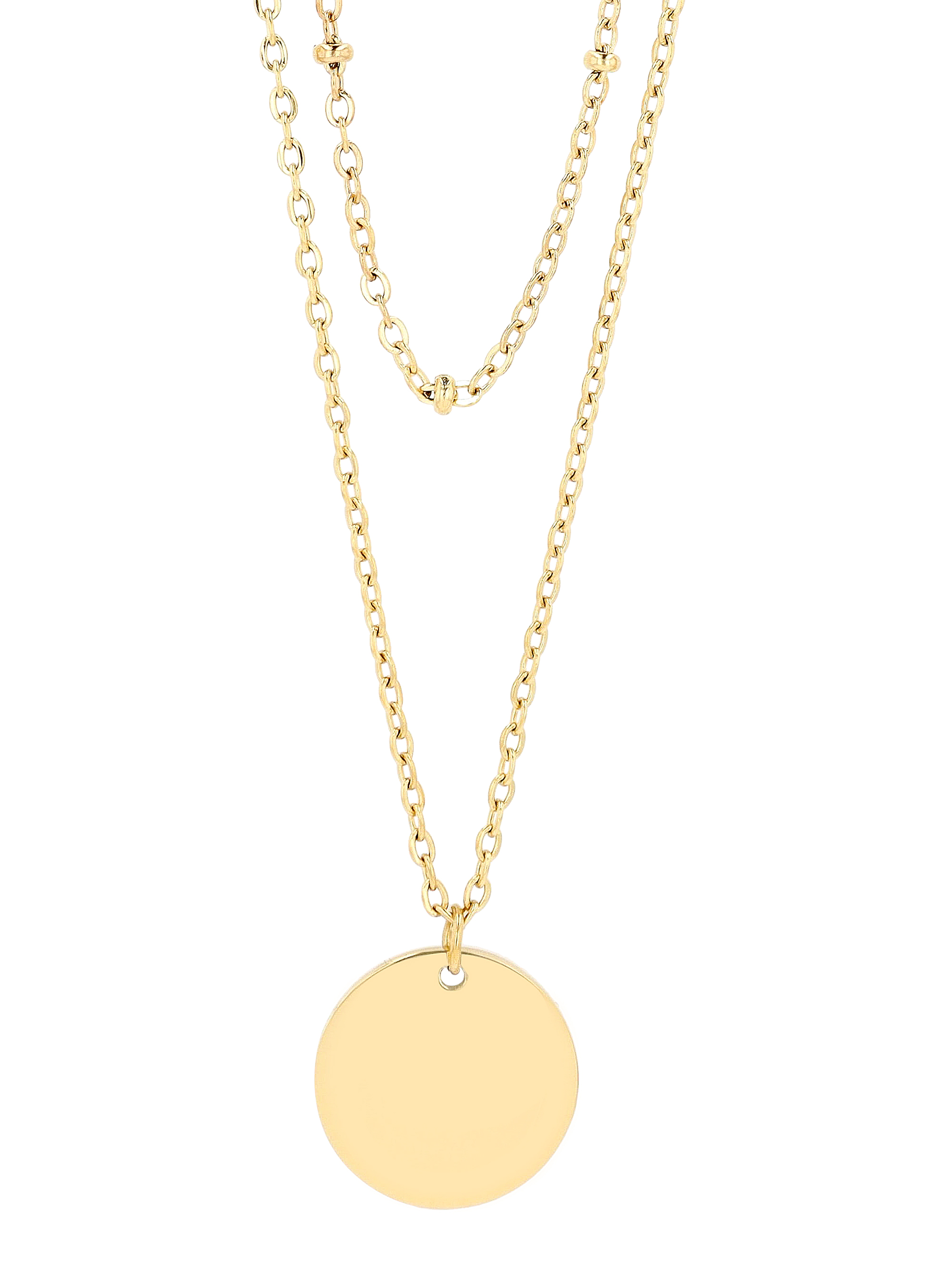 Produktinformationen ""Münz" Akzent Edelstahlkette mit gravurfähigen Anhänger, 43+5 cm, goldfarbig"