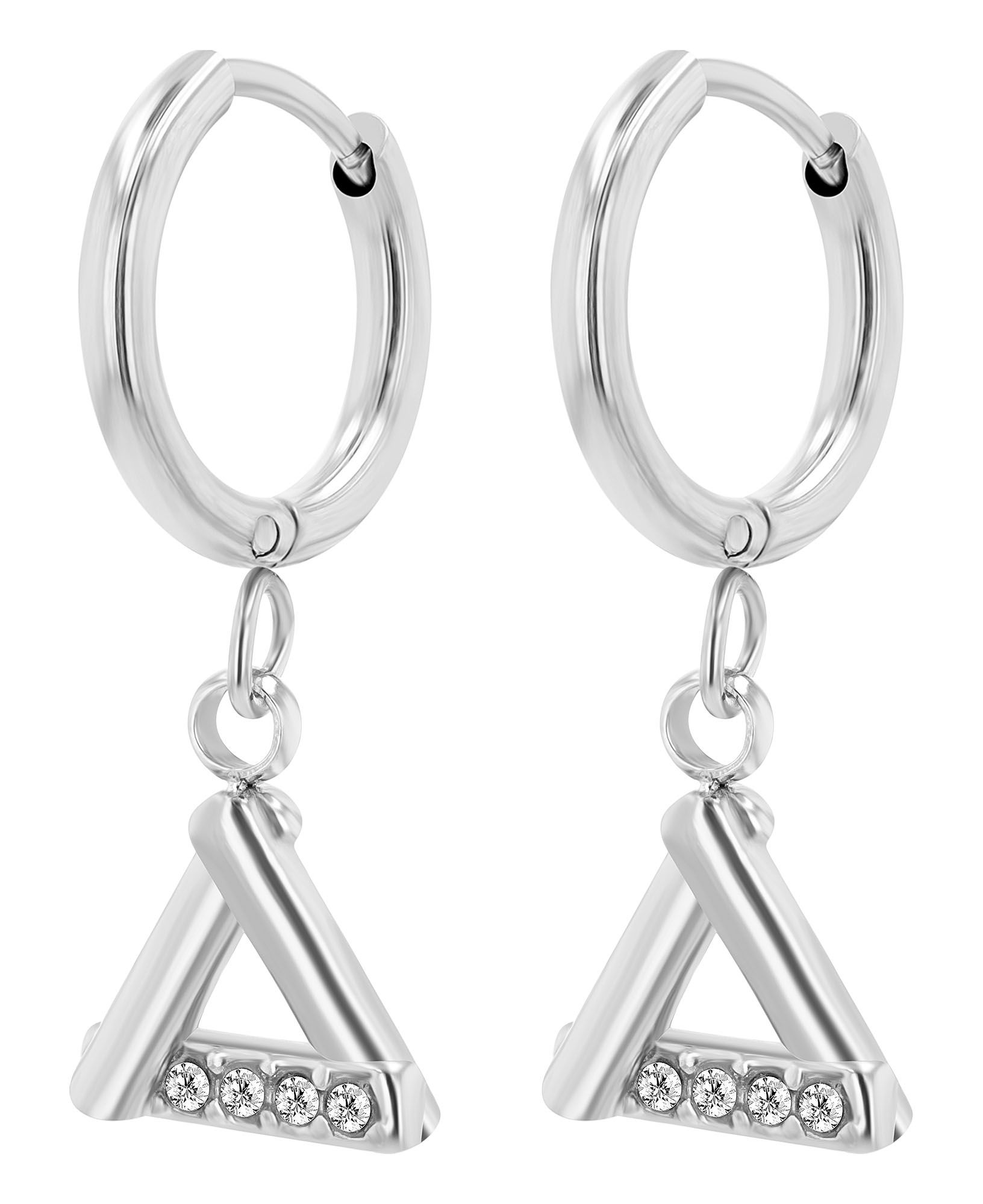 Produktinformationen ""Nadira", Akzent Creolen mit dreickigen Anhängern, Edelstahl & Similibesatz, silberfarben"