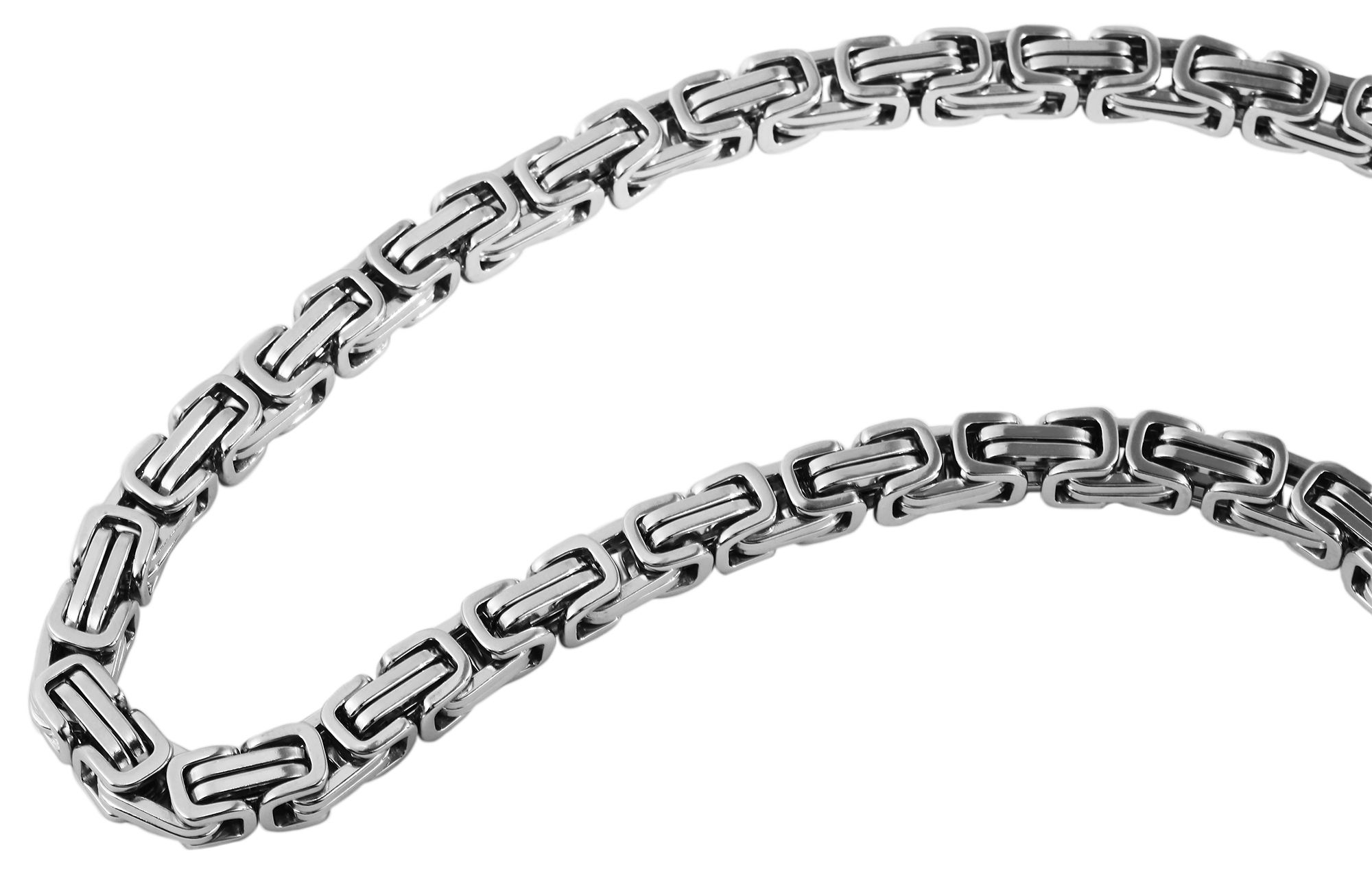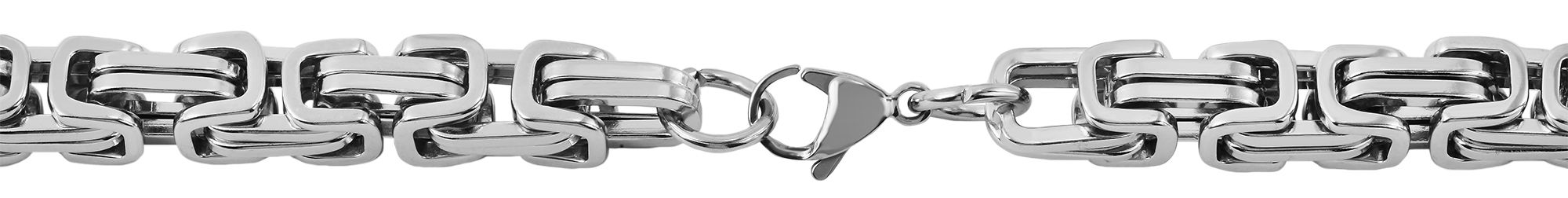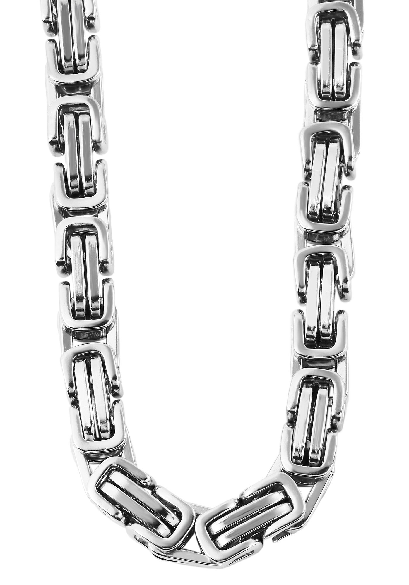 Die silberfarbene Königskette der Marke Akzent ist aus Edelstahl hergestellt. Die Maße der Halskette überzeugen besonders durch die Stärke der Kette, die gewaltige 8 mm beträgt, und sich somit als echtes Statement erweist. Mit einem silberfarbenen Karabinerhaken, der ebenfalls aus Edelstahl gefertigt ist, lässt sich die Kette öffnen und schließen. Königsketten und auch Armbänder sind für ihr maskulines und massives Design bekannt. Sie stechen durch die zahlreichen Elemente, die auf besondere Art und Weise miteinander verbunden sind hervor und komplementieren jedes Outfit als Statement Piece.
