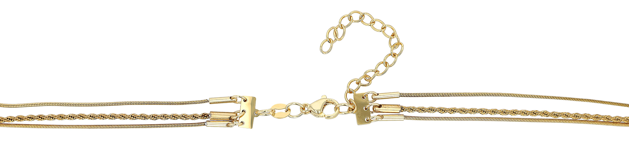 Holen Sie sich den angesagten Lagen-Look ganz ohne mühevolles Kombinieren. Diese moderne Layering-Halskette der Marke Akzent vereint drei perfekt aufeinander abgestimmte Ketten in einem einzigen Schmuckstück und setzt dabei ganz auf die Ästhetik der Ketten selbst, anstatt auf auffällige Schmuckelemente zu setzen.