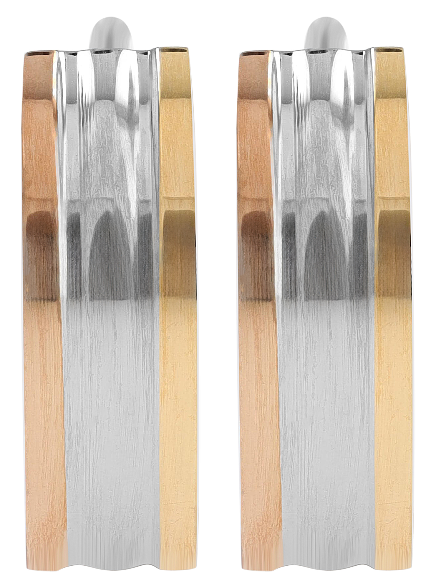 Diese stilvollen Creolen der Marke Akzent sind aus hochwertigem Edelstahl gefertigt und überzeugen durch eine einzigartige Optik im Tricolor-Design. Die Kombination aus silberfarbenen, goldfarbenen und roségoldfarbenen Streifen macht sie zu einem vielseitigen Accessoire, das zu jedem Look passt.