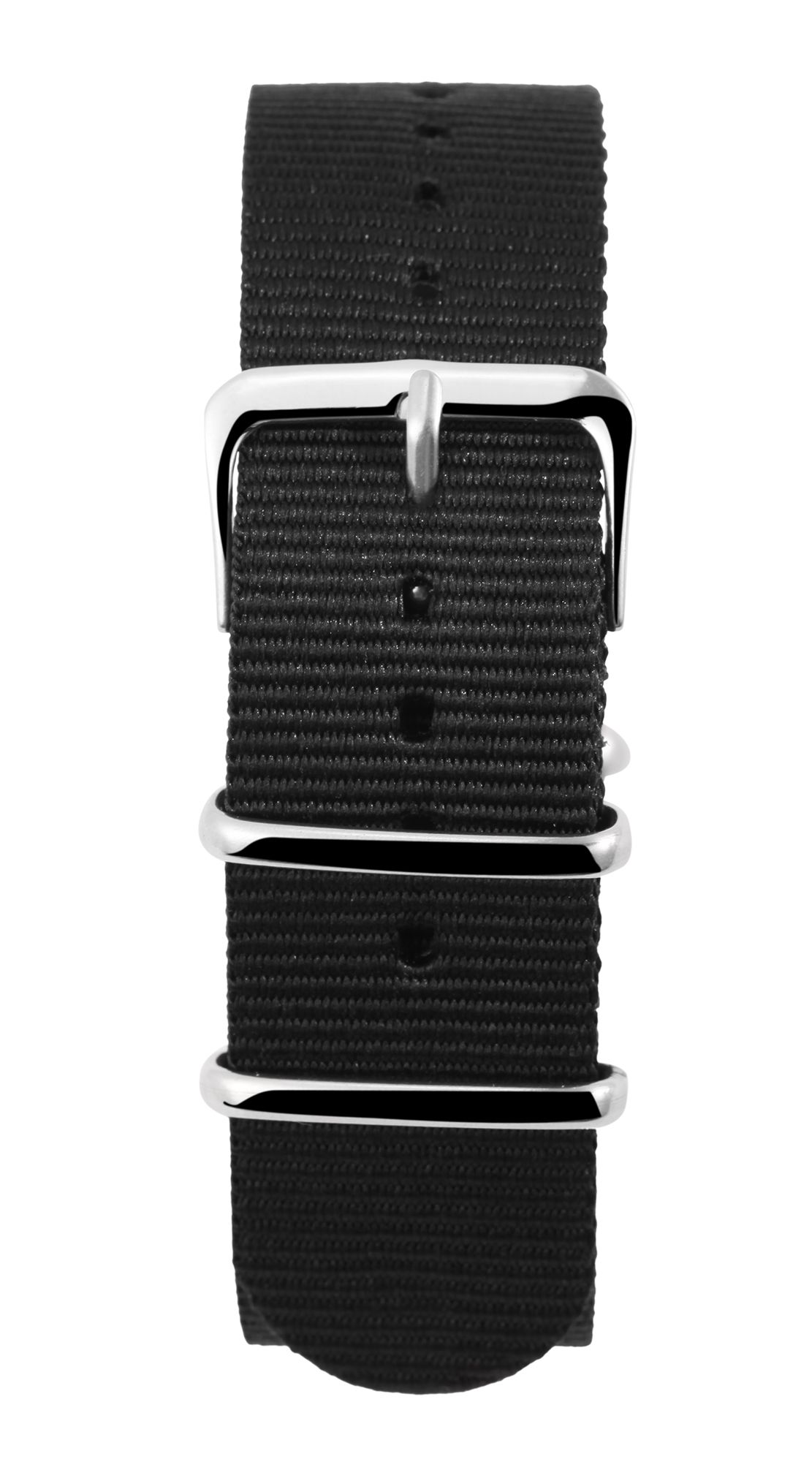 Produktinformationen "Nylon-Uhrenarmband, schwarz, Dornschließe, 22 mm"