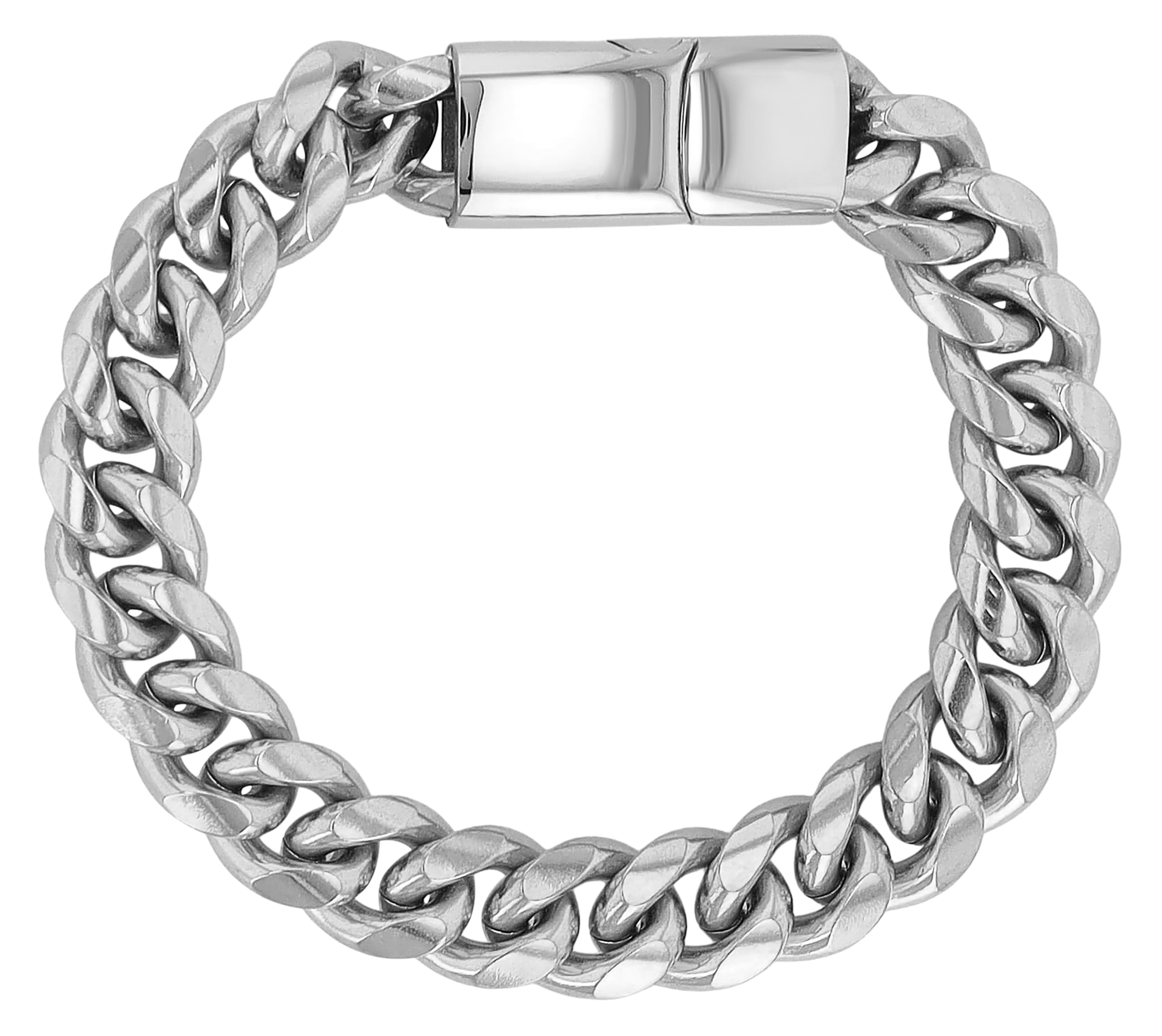 Erhältlich in silberfarben, schwarz oder goldfarben beschichtet, passt dieses Armband zu jedem Stil.