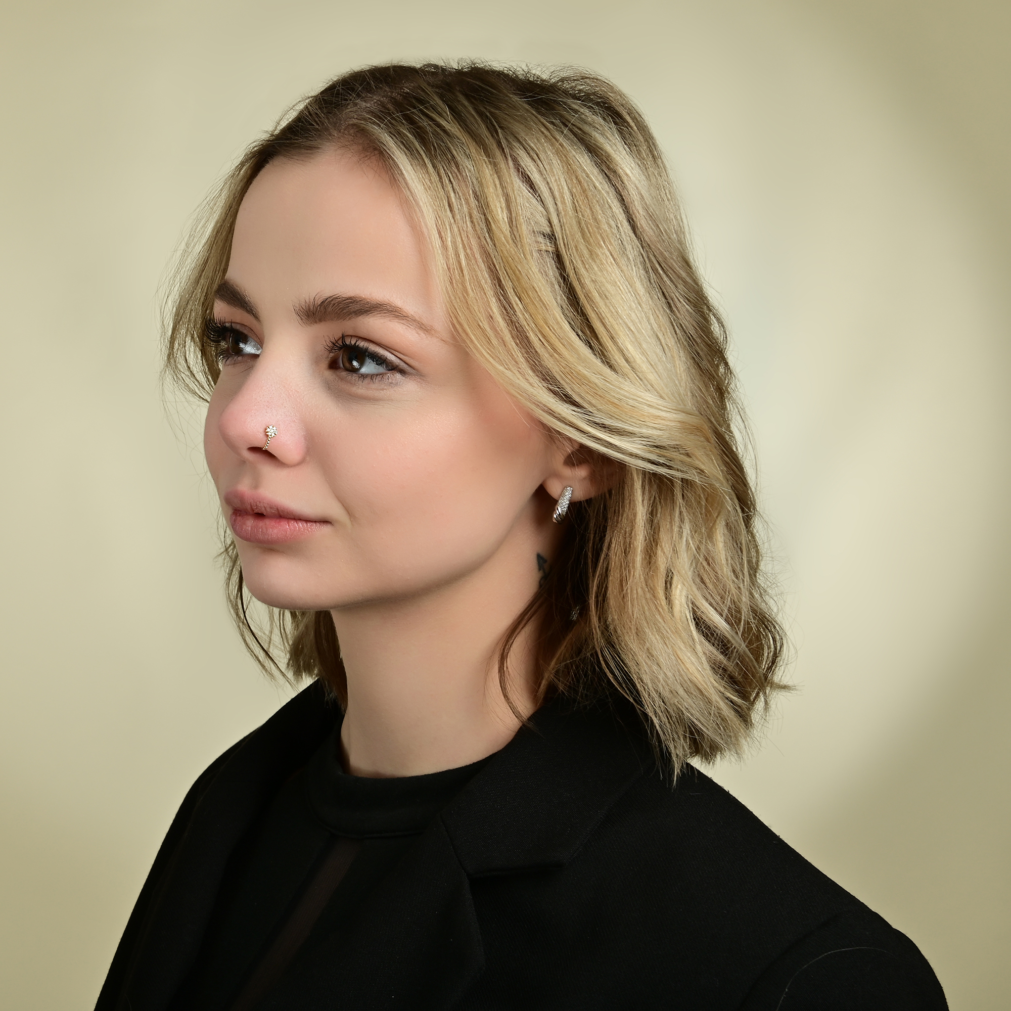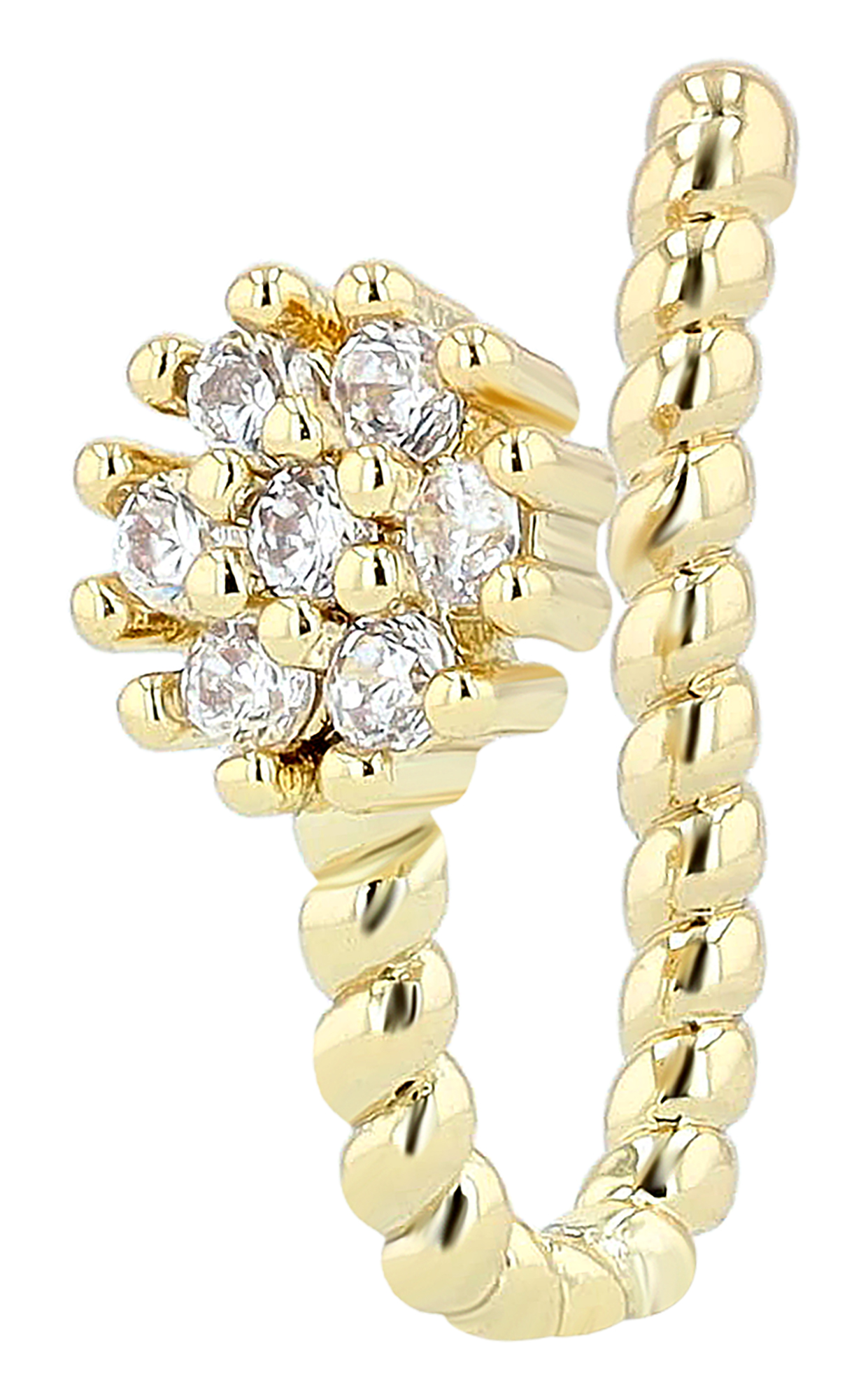 Der Kopf hat die Form eines Kreis mit einem Durchmesser von 4,5 mm und einer Stärke von 2 mm. In der Mitte 8 funkelnde Zirkone, die für einen eleganten Look sorgen.
