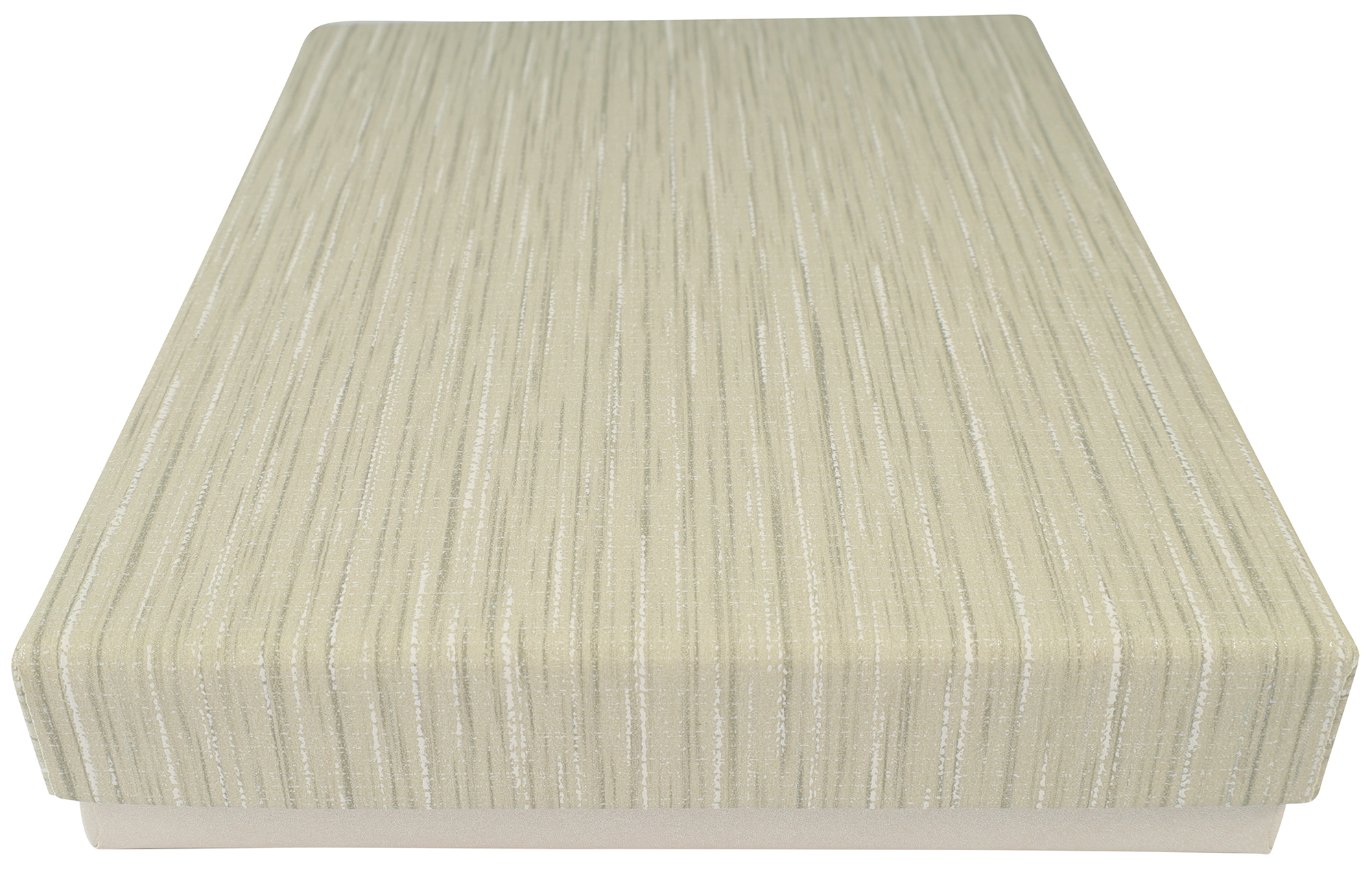 Diese bezaubernden taupefarbenen Schmuckschachteln in schlichtem Design sind nicht nur umweltfreundlich, sondern zugleich auch äußerst stilvoll durch ihre melierte, leicht strukturierte Oberfläche und ihre minimalistische Gestaltung. Im Inneren jeder Box befindet sich ein Schaumstoffkissen mit Polyesterbezug um Ihre kostbaren Schmuckstücke zu schützen und zu präsentieren. Erhältlich sind die Schmuckboxen in unterschiedlichen Größen und ihren entsprechenden Gebindegrößen:
