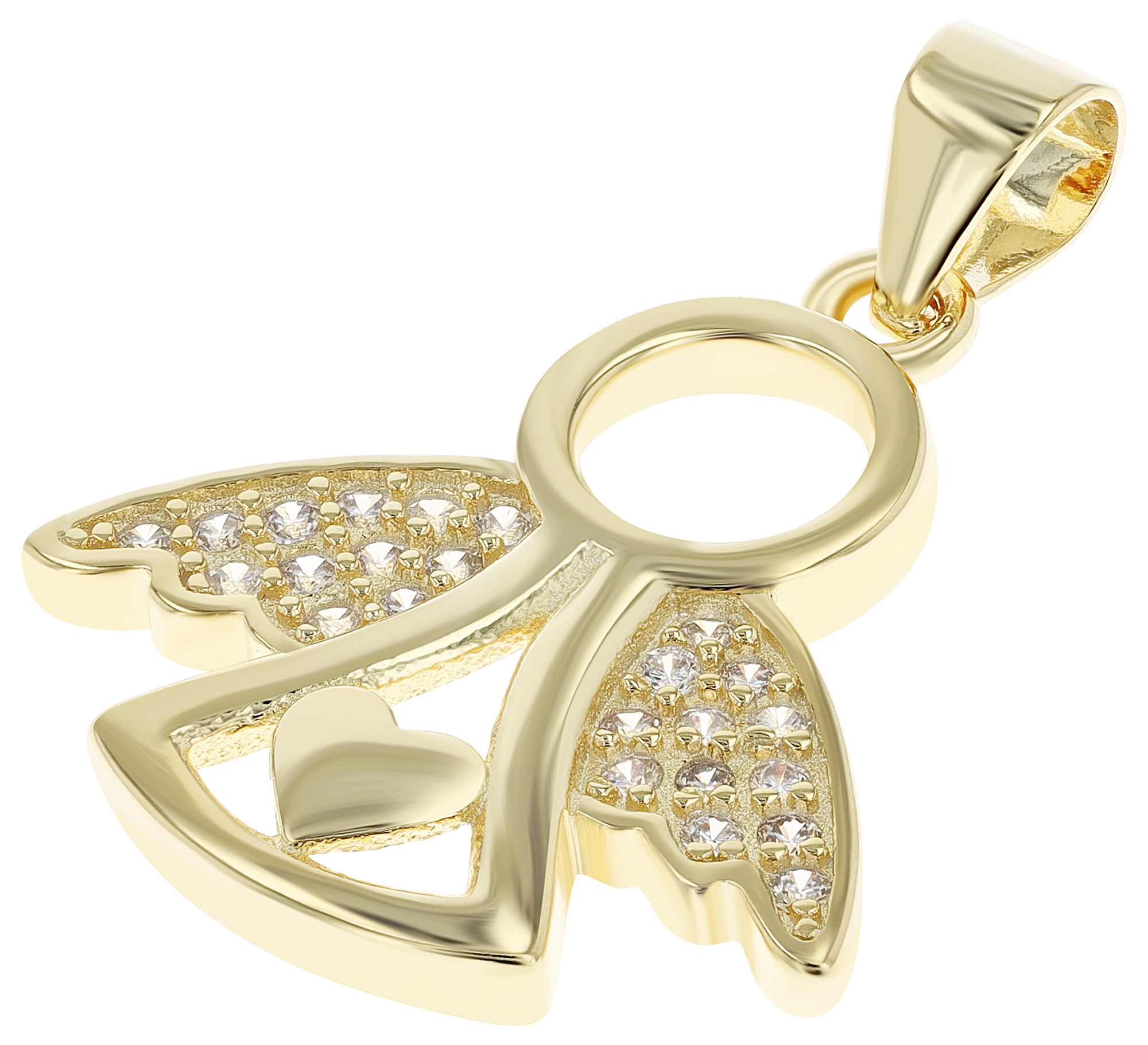 Produktinformationen ""Parivash", 925/- Echt Silber Anhänger, Engel mit Herz, Zirkonia, vergoldet"