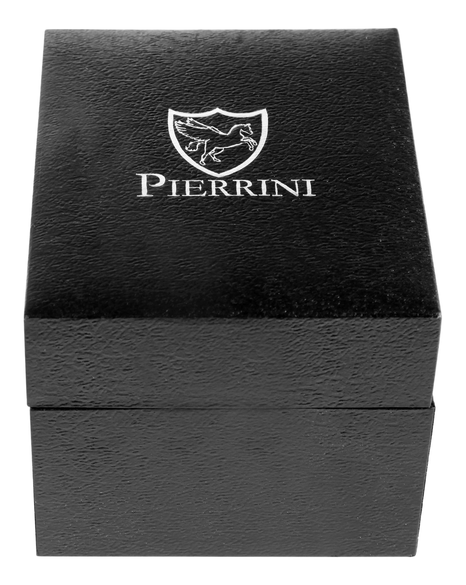 Die Pierrini Uhren-Klappbox aus hochwertigem und robustem Karton erhält durch ihre strukturierte Oberfläche und dem silberfarbenem Logo einen elegante Look.