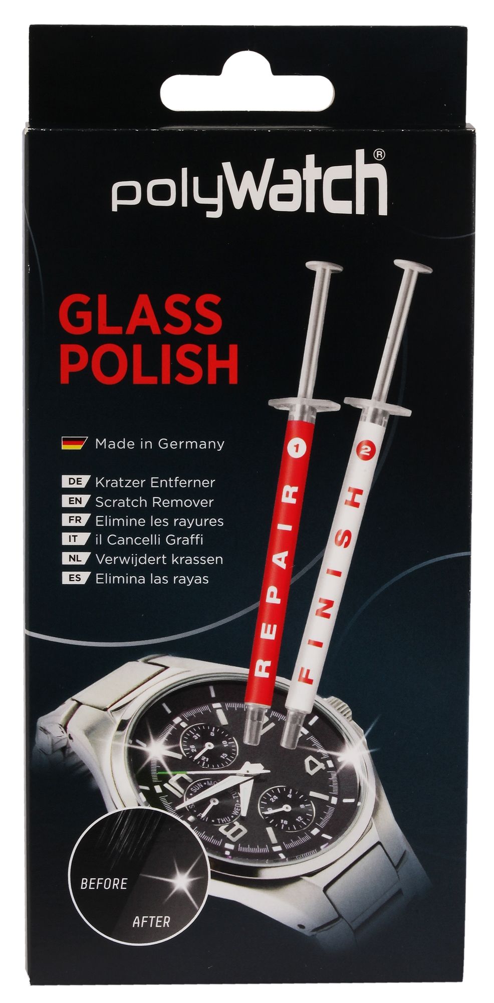 Das Katzerentferner-Set der Marke "POLYWATCH" ist eine hochleistungs Diamant-Politur zum Entfernen von Kratzern auf Uhrengläsern. Das Politurset ist aber auch vielseitig einsetzbar. Zum Beispiel für das Smartphonedisplay, im Auto, auf Möbeln, im Haushalt oder auf Fenstern. Das All-Inclusive-Set beinhaltet 0,5 Gramm High-Tech Diamant Politurpaste zum Entfernen von Kratzern und 0,5 Gramm Hochleistungs-Diamant-Finish Paste zum Polieren. Die Polierpaste lässt sich Dank des mitgelieferten Polierstabes und der 12 Polierstreifen besonders bequem auf den gewünschten Flächen auftragen.