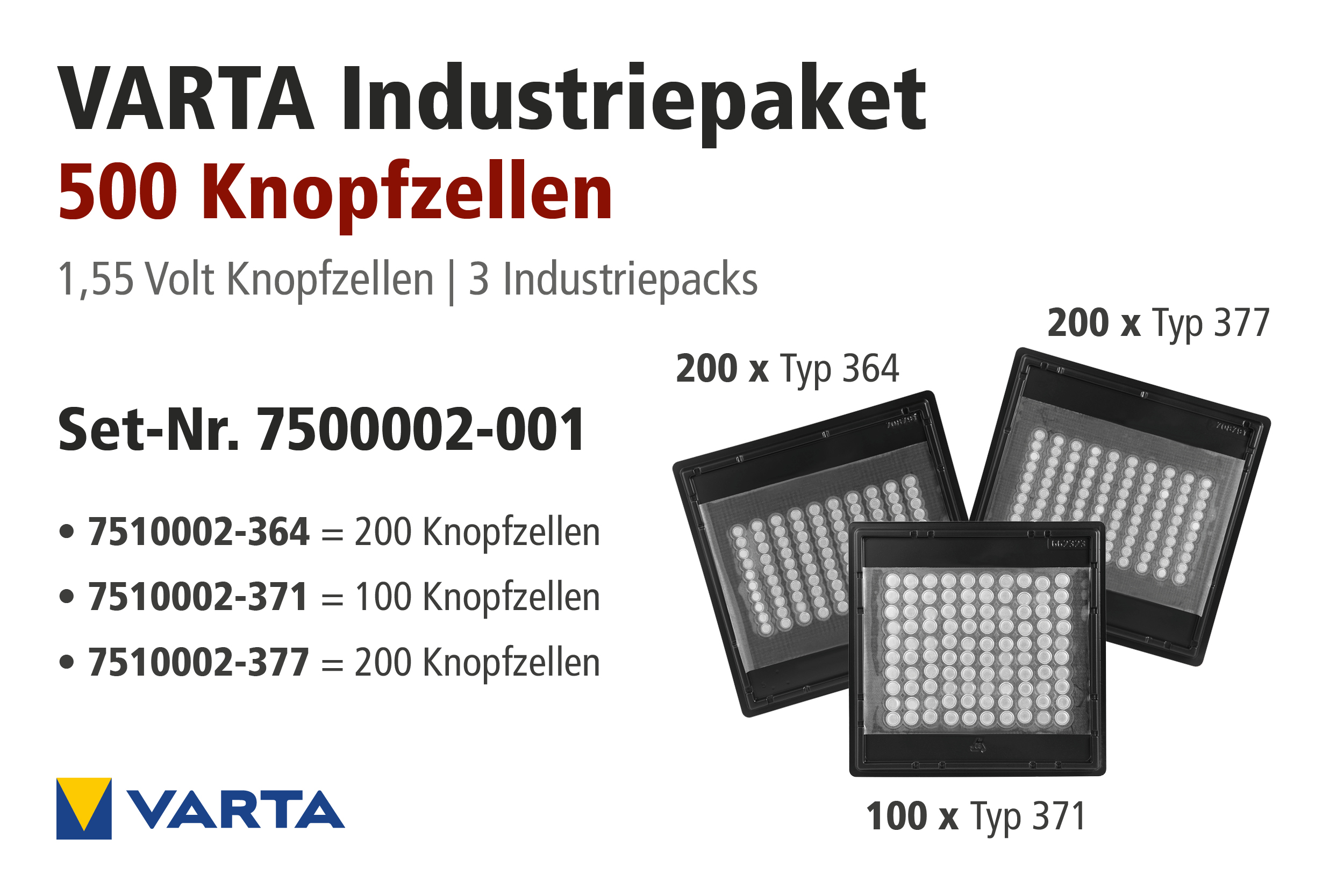 Produktinformationen "Power Paket 1 - 200 Stück Varta 377 / 200 Stück Varta 364 / 100 Stück Varta 371, Industriepacks"