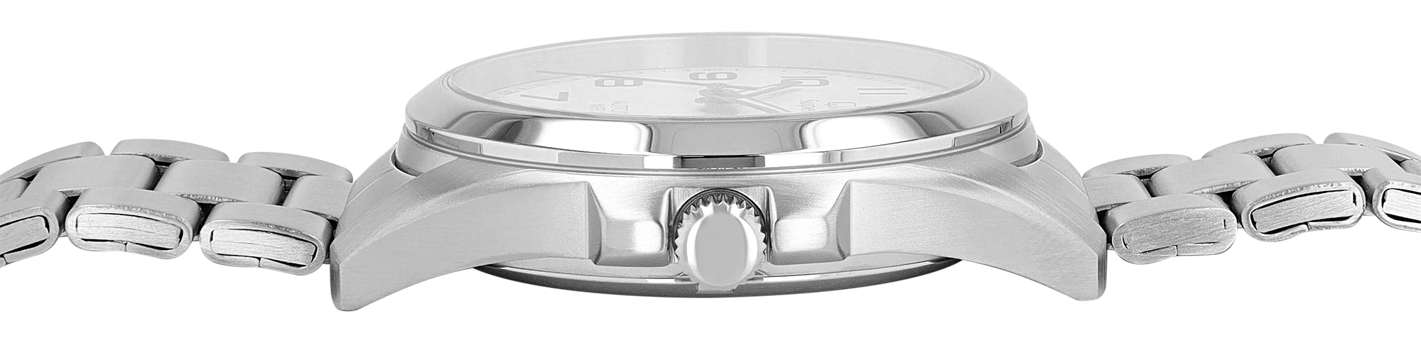 Ein robustes 21.5 mm breites Edelstahl-Gliederarmband mit Faltschließe und die klassische Mineralglasfront analoger Armbanduhren runden das edle Design ab und machen diese Uhr zum unverzichtbaren Accessoire für den stilbewussten Mann, der Wert auf Qualität und Funktionalität legt. Sie ergänzt jedes Outfit, von lässig bis formell, und wird zu einem unverzichtbaren Begleiter, der Ihre Persönlichkeit unterstreicht. Erleben Sie die Perfektion in jedem Detail und machen Sie diese Uhr zu Ihrem persönlichen Statement.
