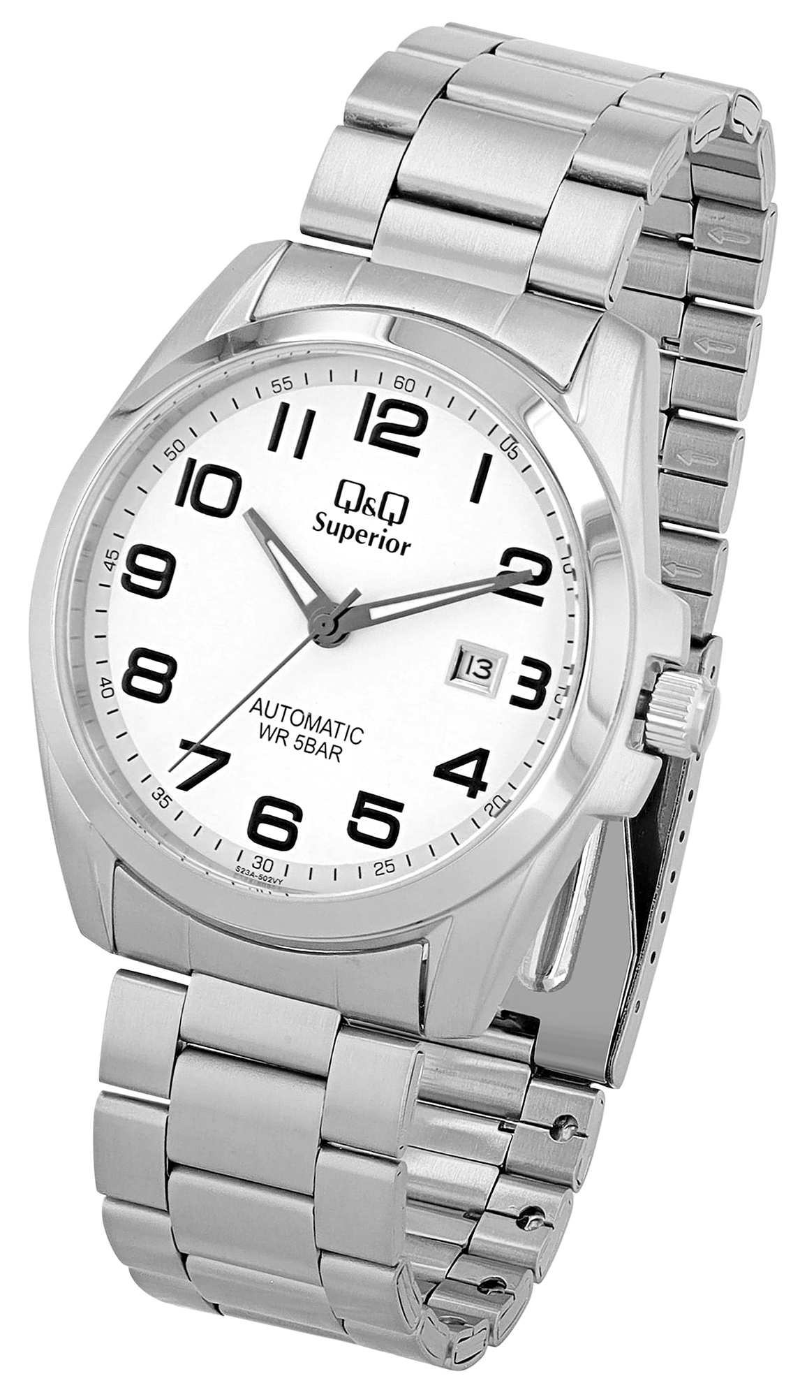Produktinformationen "Q&Q Automatik Herrenuhr, Edelstahl, silberfarben/weiß, 5 ATM, Ø 42 mm"